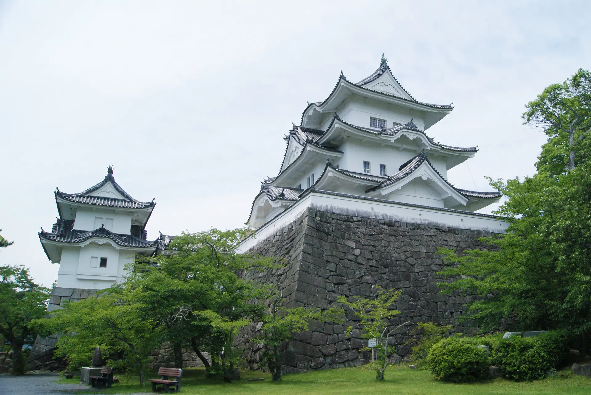 「伊賀上野城」には車で約15分で到着。白い三層の天守閣が鳳凰が翼を休めている姿に似ていることから「白鳳城」ともいわれるお城。
