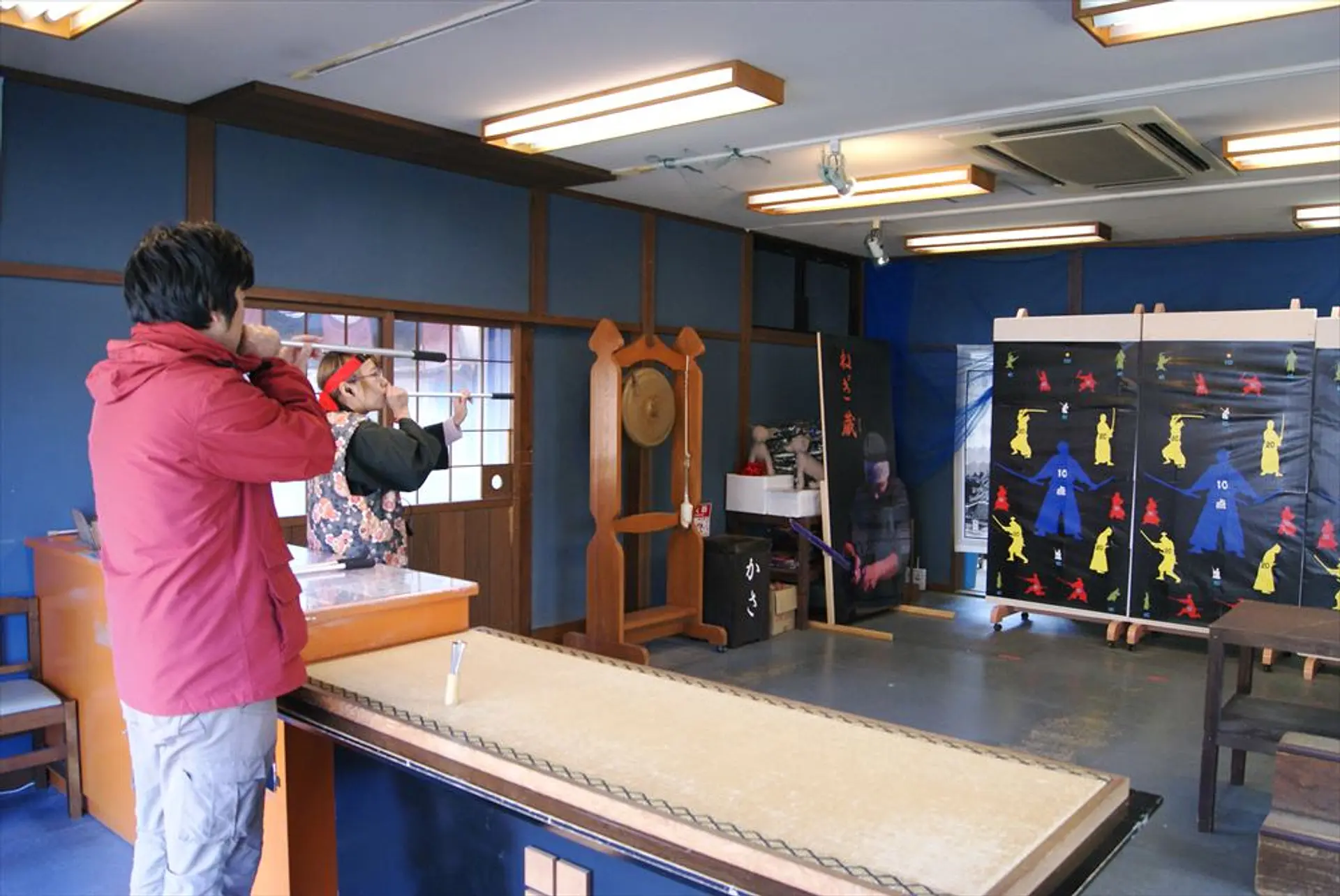 忍者の飛び道具「吹き矢」に人生初挑戦! 5つ的に命中させるとオリジナルグッズなどの景品がもらえます。思ったよりうまくいって、うれしかったー!
