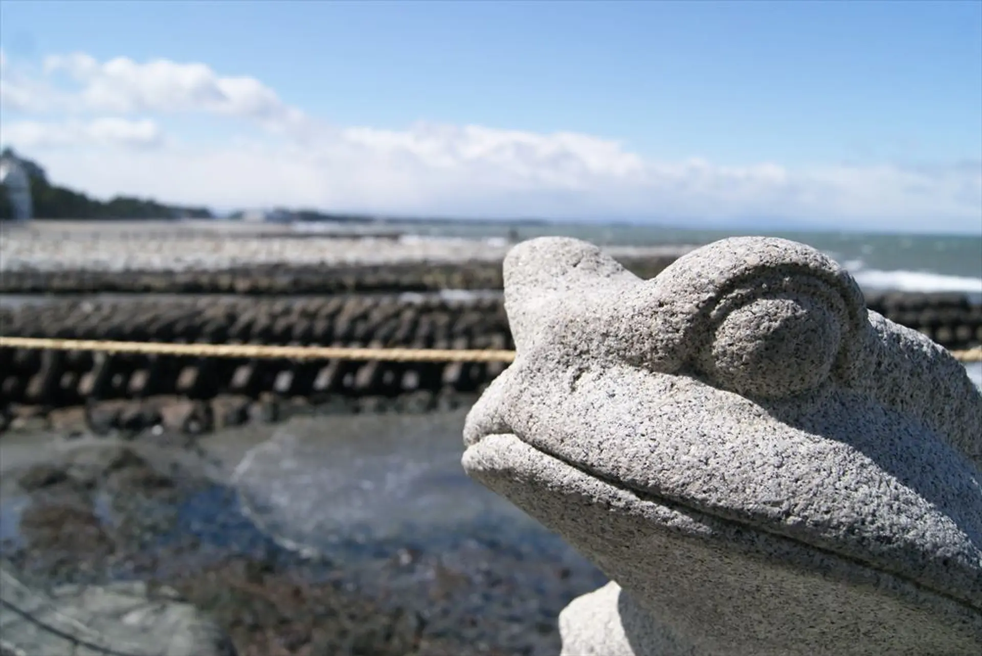 帰り際に見送ってくれた「カエル」。この神社のご祭神でもある猿田彦大神の神使とされています。「無事かえる」ことを約束しました。