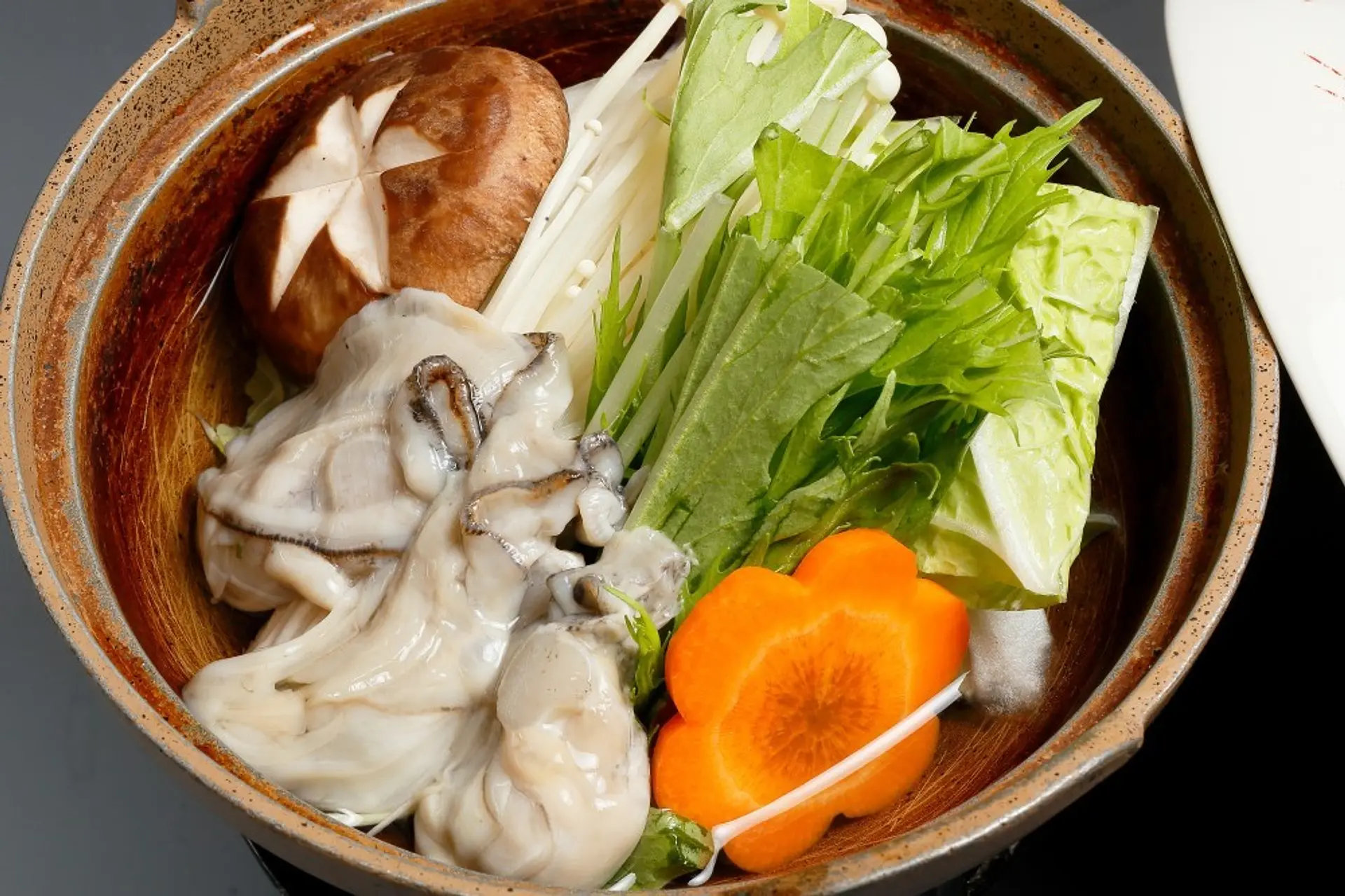 「カキ鍋」もおすすめの別注料理。新鮮なカキを優しい味つけで味わうことができ、体はぽっかぽか。