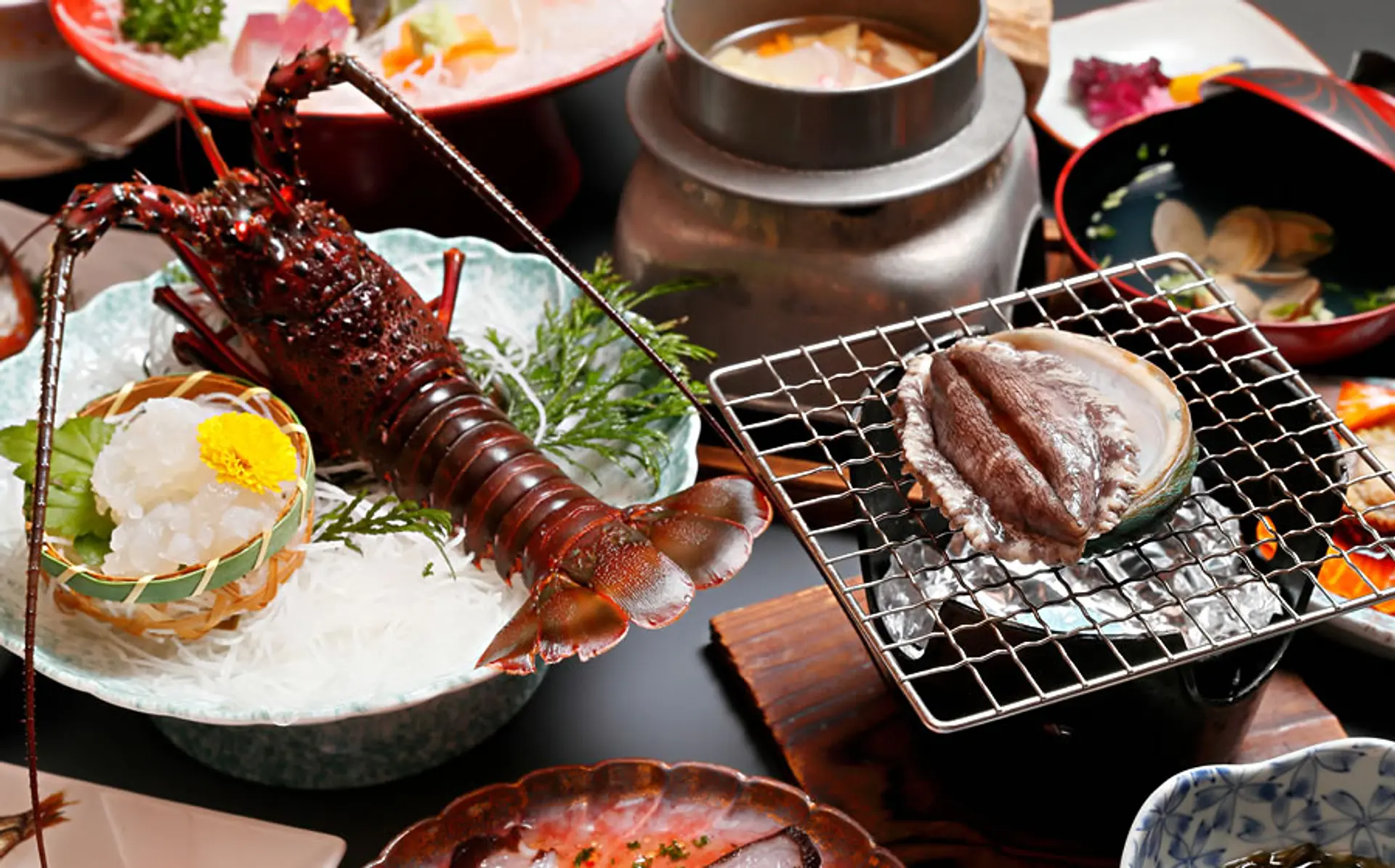 伊勢エビ、あわび、和牛という夢の組み合わせで人気の「3大味覚会席」。それぞれの食材がなかなか味わえない新鮮さ。食における鮮度の大切さを教えてくれる料理です。