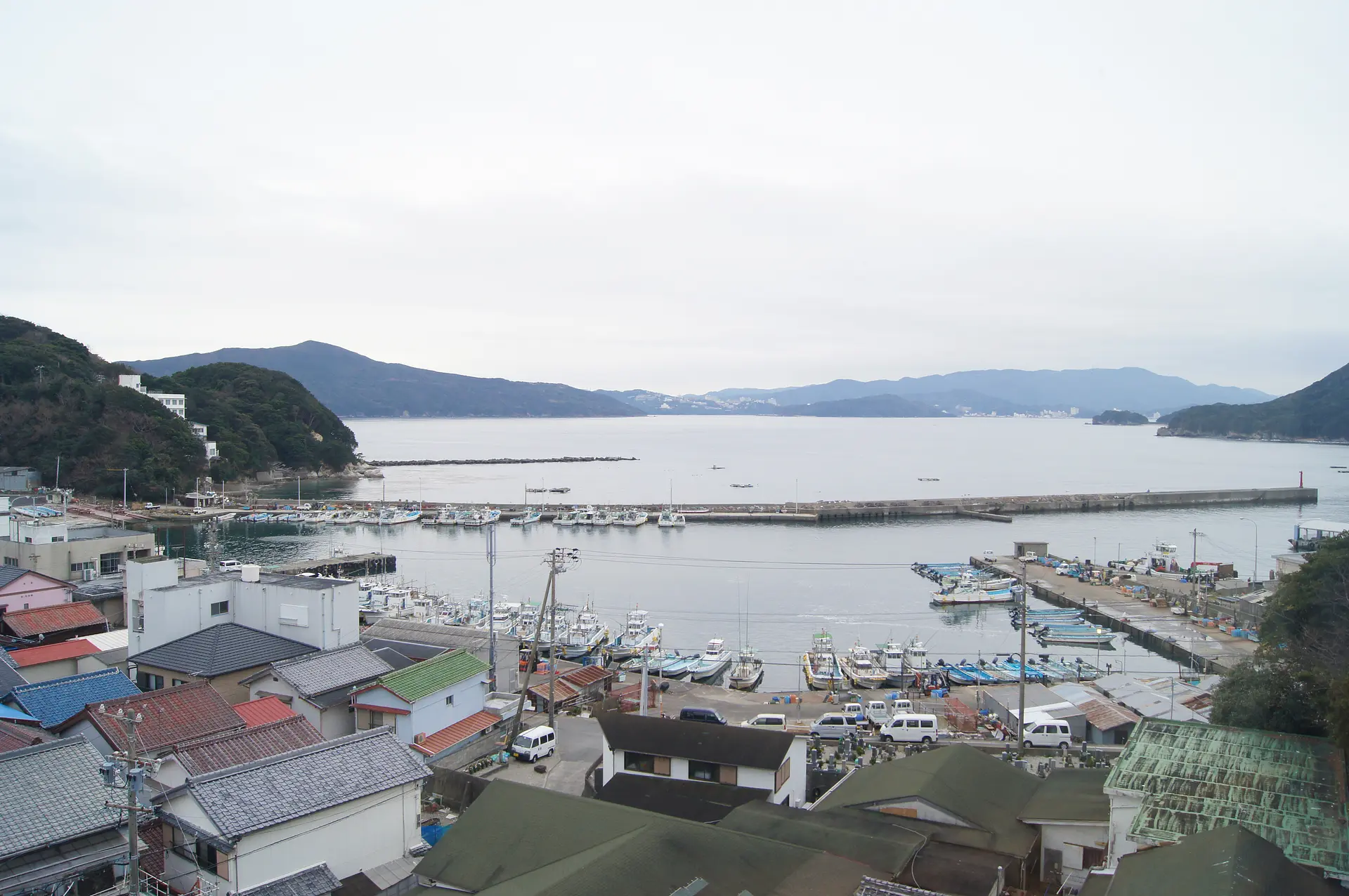 何隻も停泊する漁船、その隣に建ち並ぶ海女小屋、積み重ねられた漁網…。海の恵みに支えられた島の暮らしが、この風景から感じ取れます。