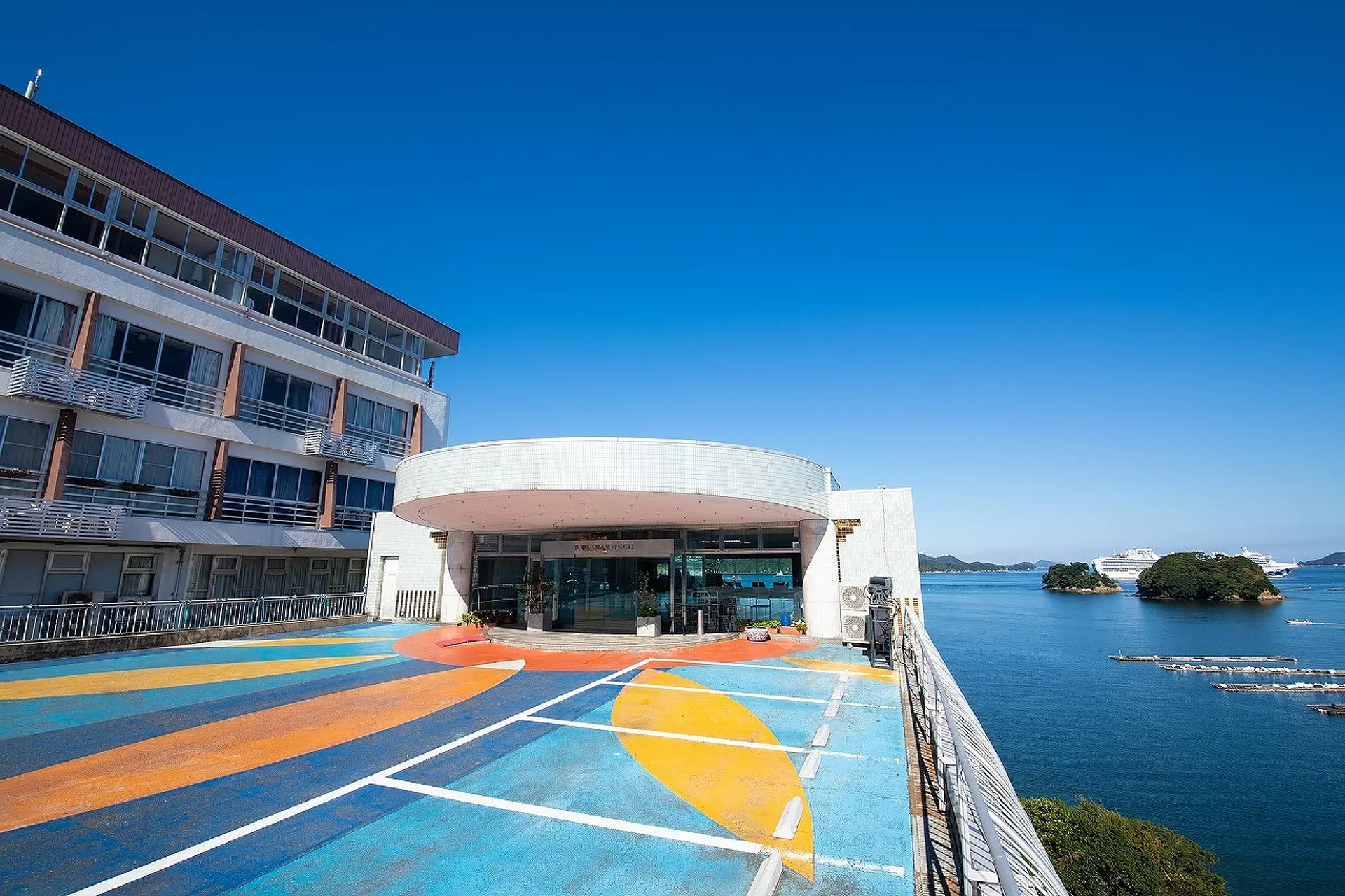 鳥羽の中心地から車で約5分の場所、「マリンブルー」という言葉がぴったりな鳥羽湾の岬に建つ「鳥羽グランドホテル」は、遠くから見ても、そのロケーションの素晴らしさがわかります。