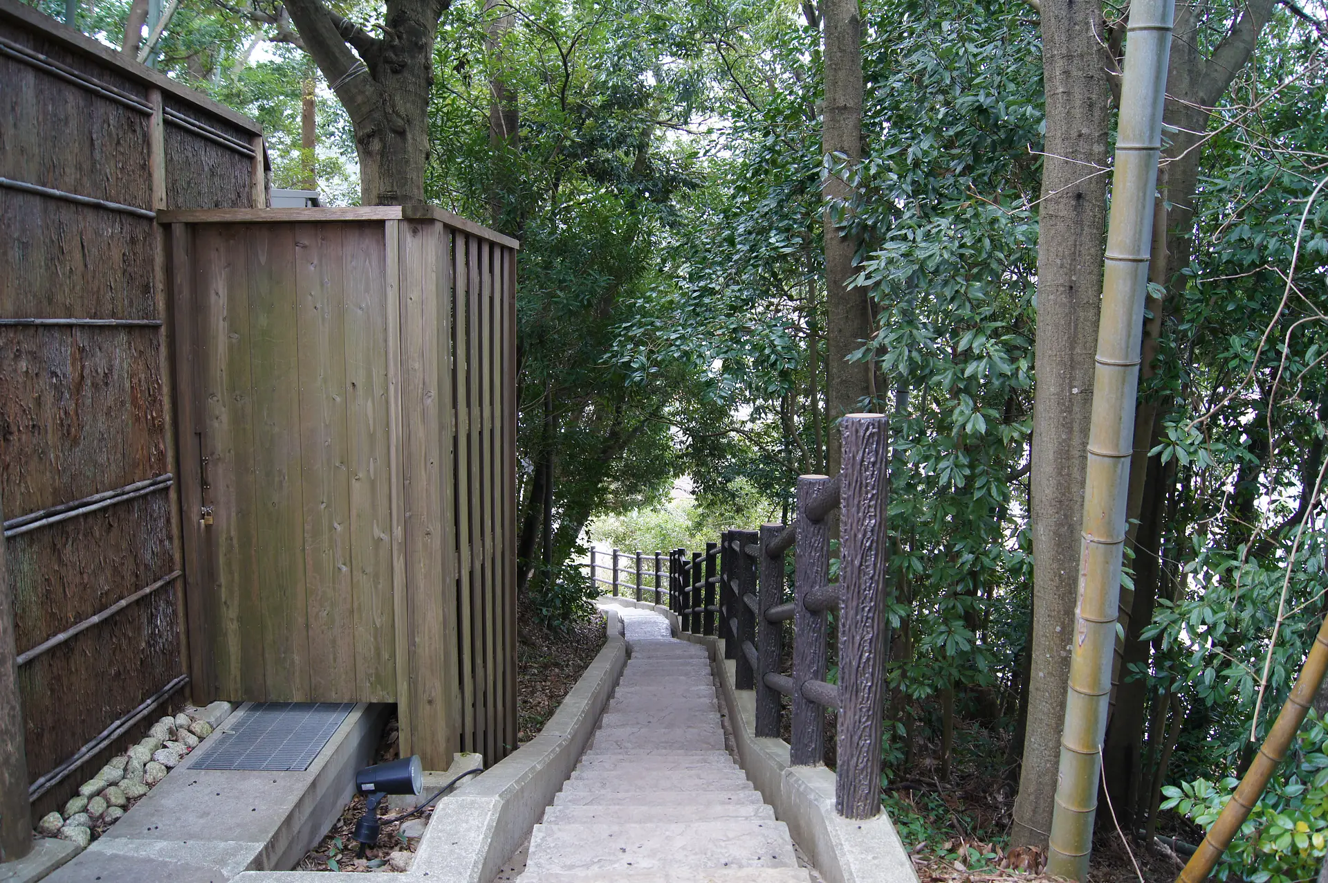 駐車場の脇にある扉を開けると、内宮へとつながる散策路が続いています。昔ながらの町並みを楽しみたい方は「おはらい町」を、伊勢の自然を感じたい方は「五十鈴沿い」を歩いてみてください。