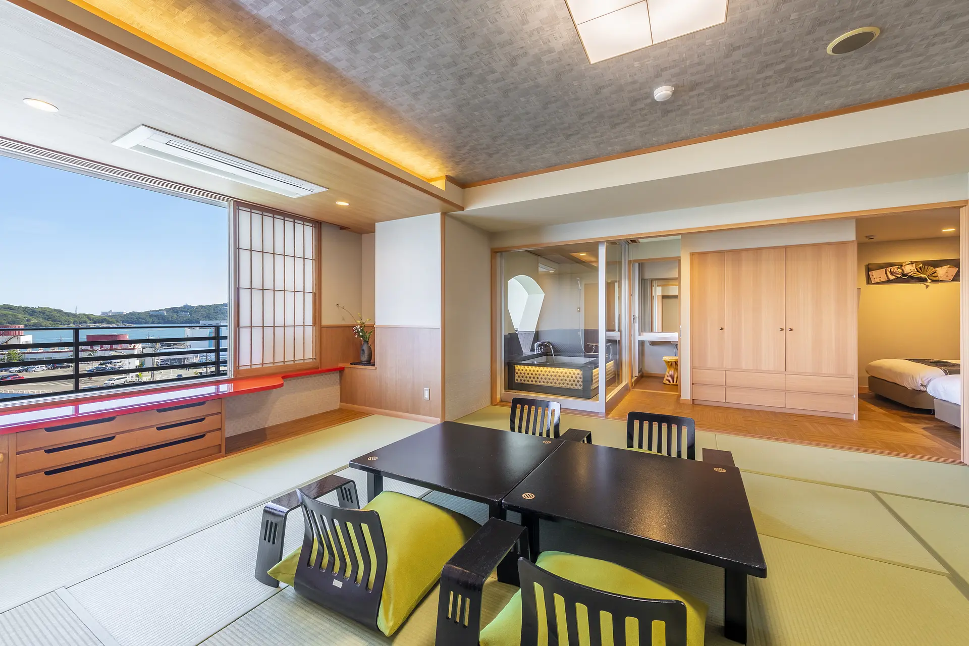 ゆったりとした間取りの中に、和のしつらえが光る客室が人気の「戸田家」。