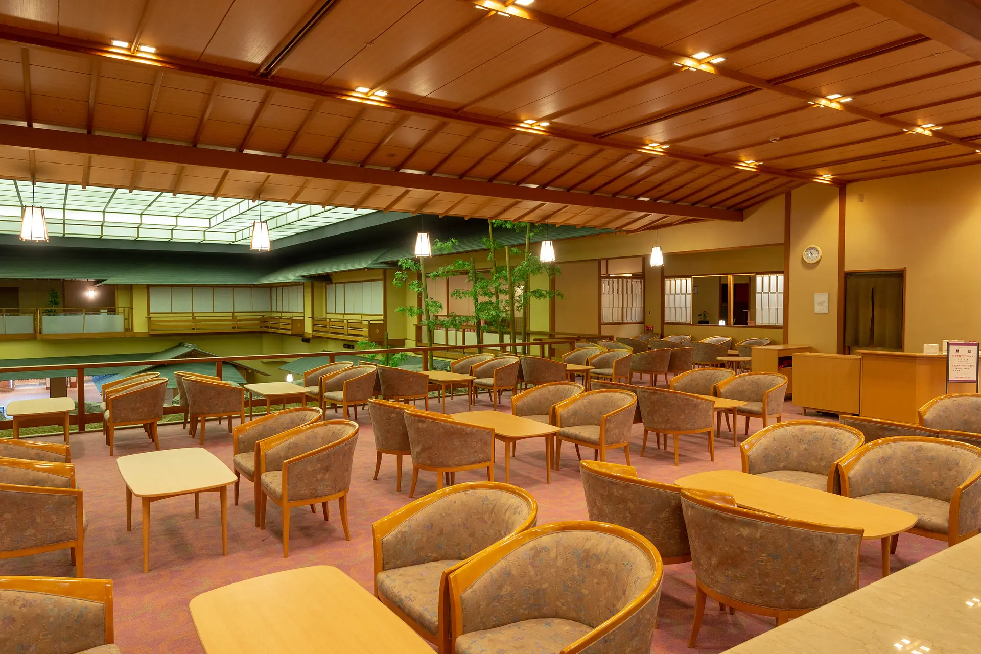 和の情緒漂うロビーラウンジ「翠景(すいけい)」。お客さんを優しく出迎えてくれる空間です。