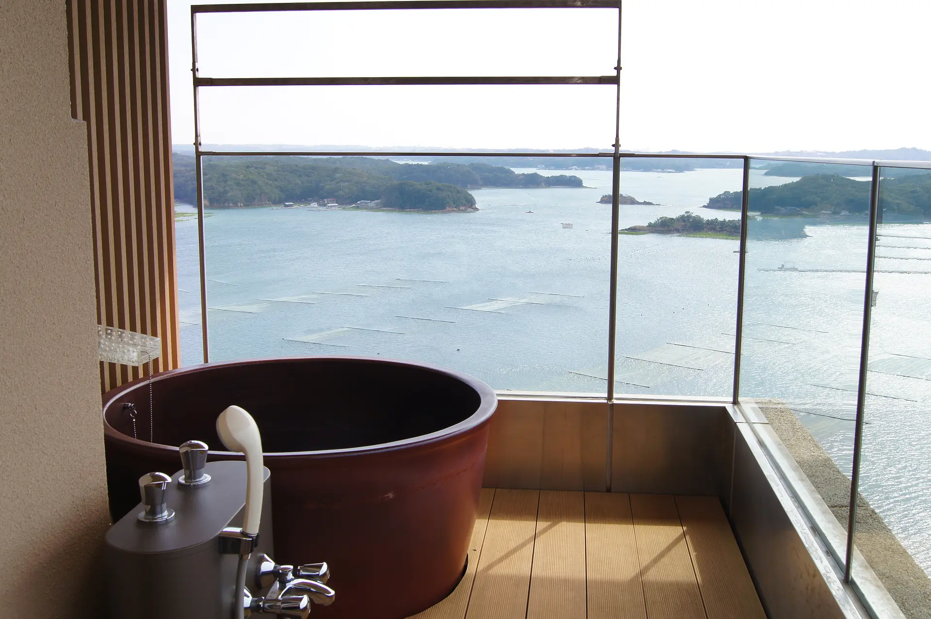 英虞湾の美しい景色を眺めながら楽しめる「展望露天風呂」。その気持ち良さは格別!