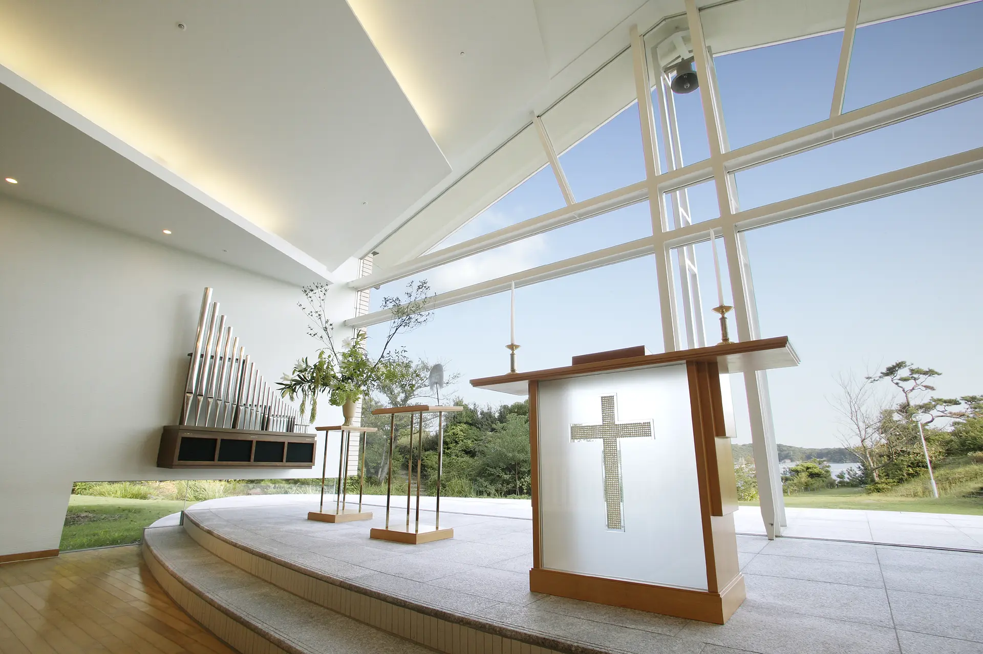 また、「賢島宝生苑」は結婚式場として利用できます。クリスタルチャペル「シンフォニー」は、大理石のバージンロードと本真珠の十字架が幸せな2人を迎えます。