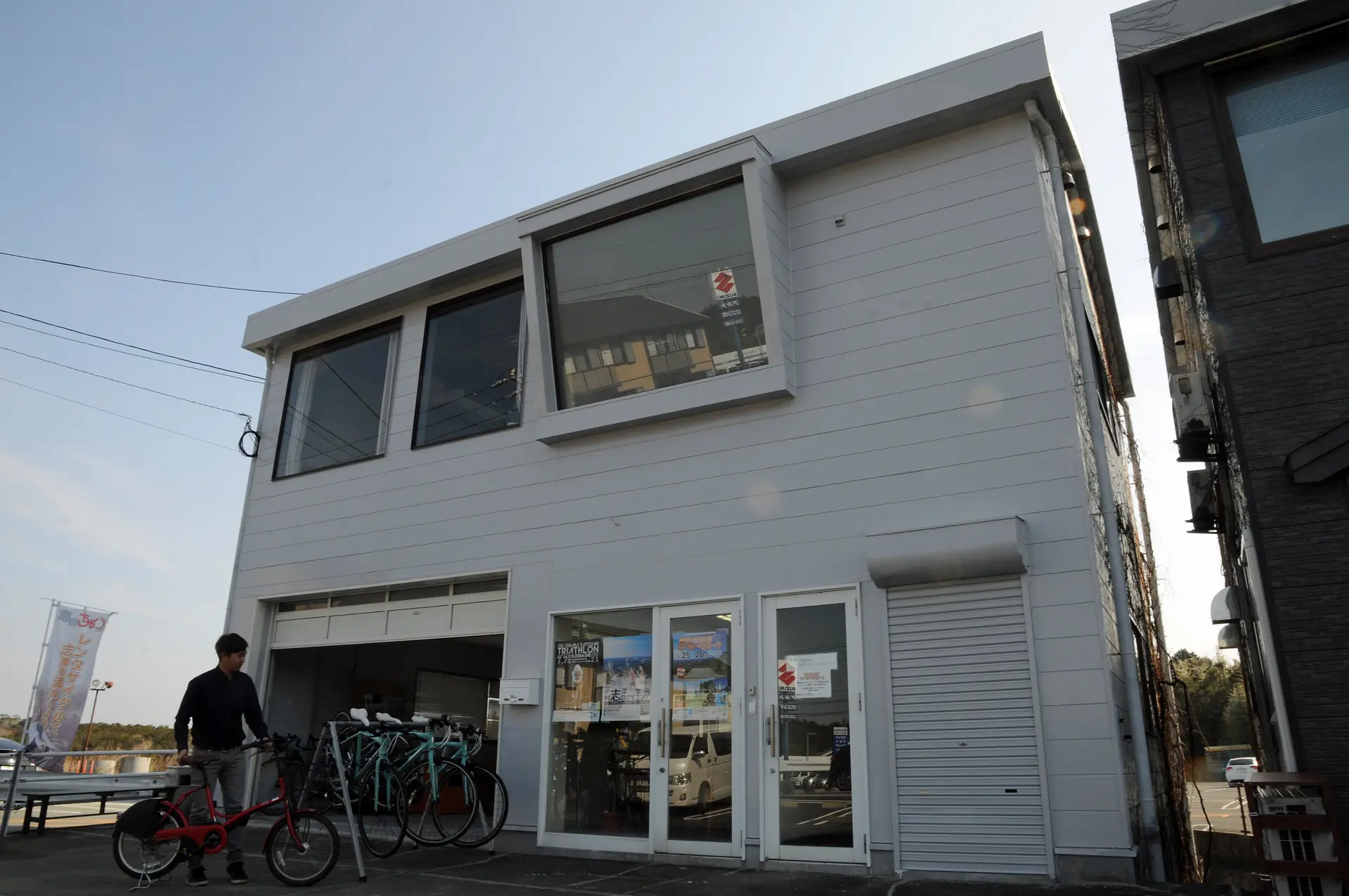 志摩スポーツコミッションには、隣接するパチンコ店と共用の大きな駐車スペースがあります。電車でアクセスする場合は、近鉄の特急停車駅である鵜方駅まで輪行するのが便利です。