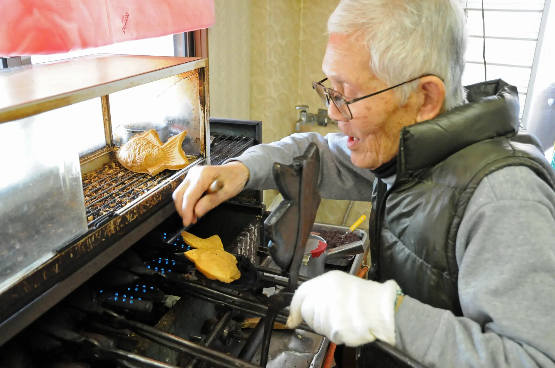 「あっはっは、『およげ!たいやきくん』がヒットしたころは朝から晩まで1日中これで鯛焼きを焼き続けてたんやで!」