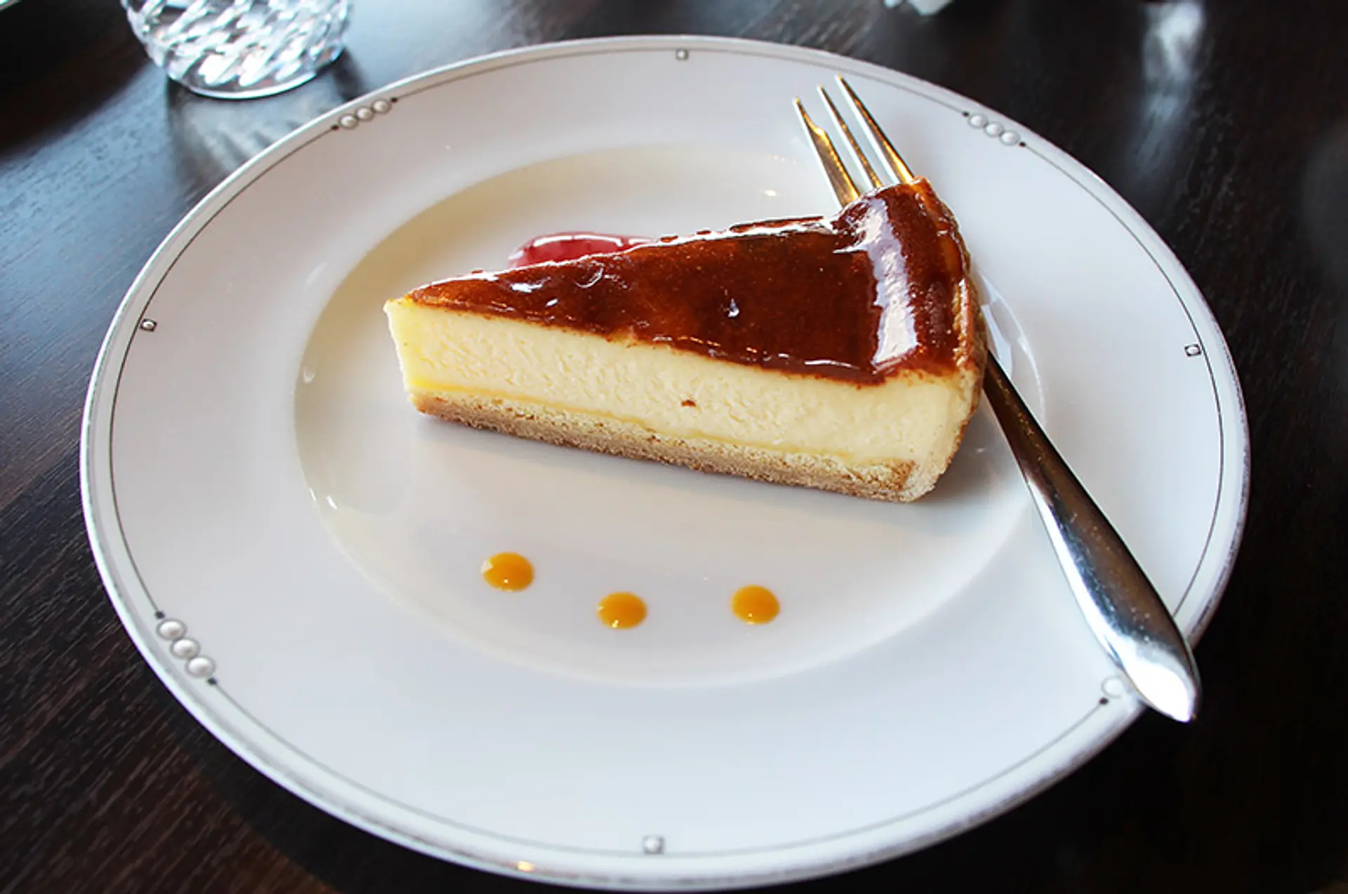 アプリコットジャムの酸味としっとりとした舌触りが最高の「チーズケーキ」。