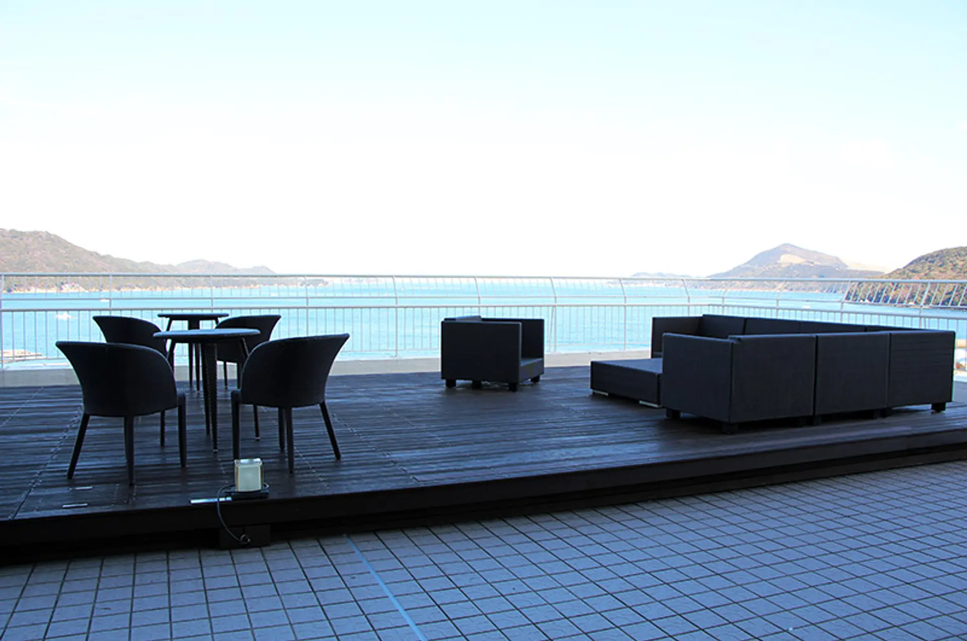 ホテルのロビーから鳥羽湾を展望できるテラスに出られます。