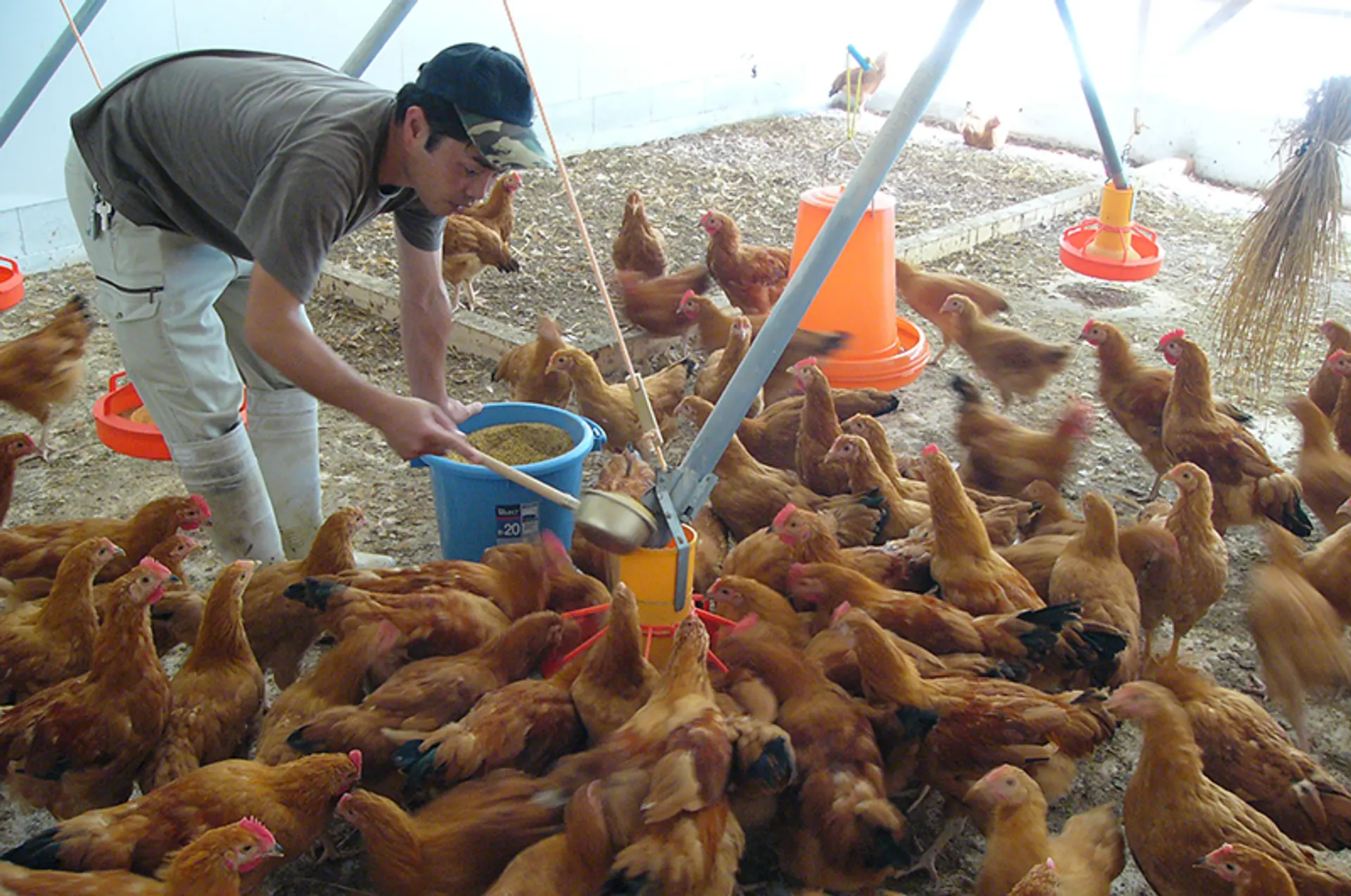 餌として与えられるのは、抗生物質を含まない配合飼料。そこへ、地元熊野の特産品「新姫」の果皮を混ぜているのだそうです。新姫を混ぜると毛ヅヤがよく、健康な鶏になるのだとか。