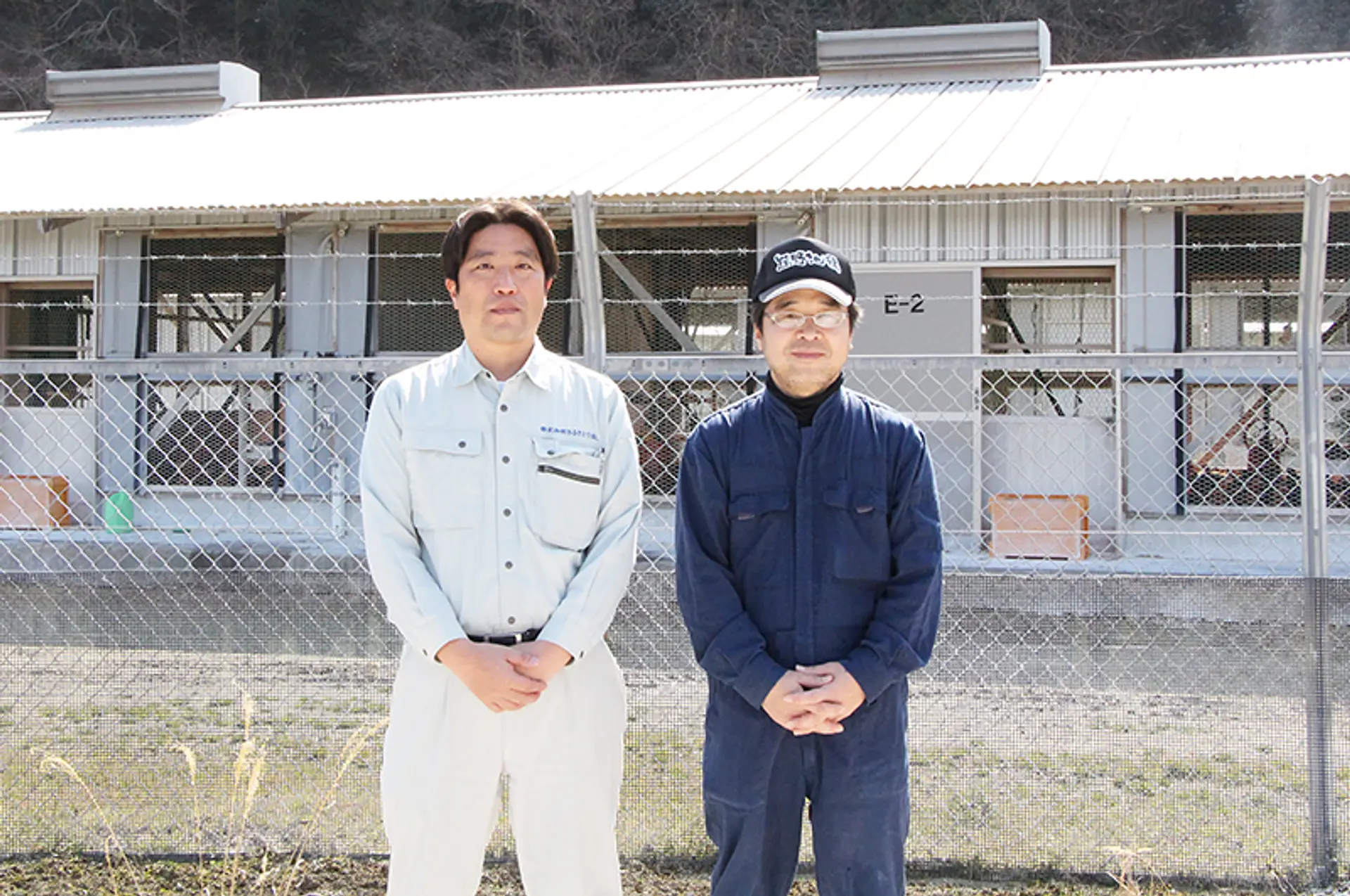 今回は、その熊野地鶏を育成、販売する熊野市ふるさと振興公社 営業担当の今西さんと、飼育担当の濱口さんに熊野地鶏のおいしさの秘密を伺ってきました。