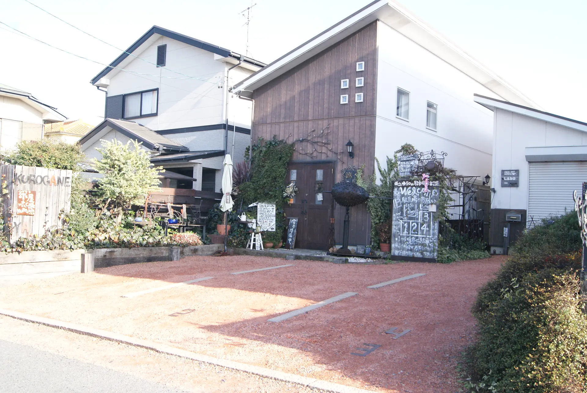 近鉄名古屋線とJR関西本線の線路沿い、そして、木曽川の近くにあるお店「鐵屋(くろがねや)+Café」。住宅地の中で一際目立つ、おしゃれな外観です。