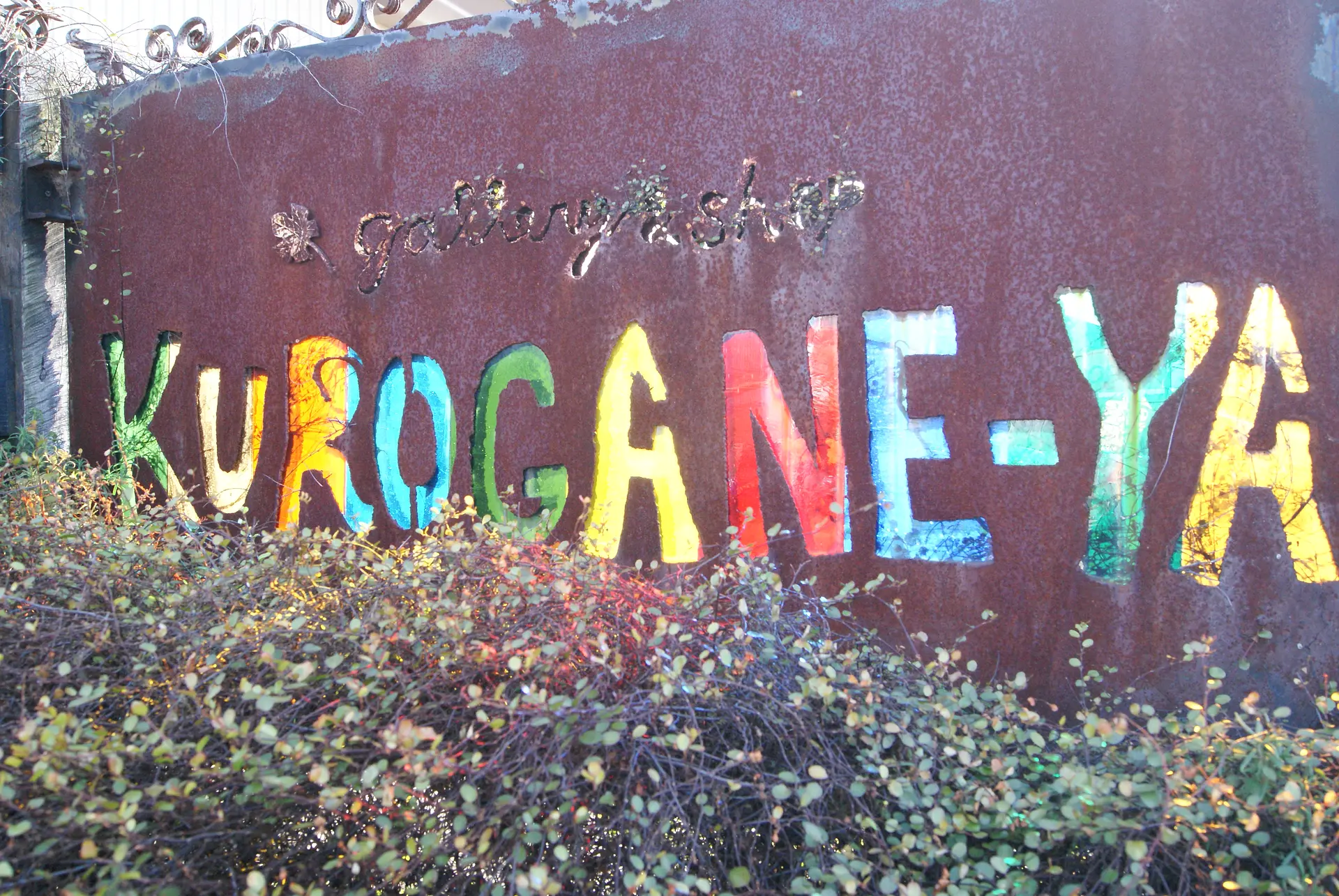 お店の駐車場には、鉄板にステンドガラスで「KUROGANE-YA」の文字の看板が!こんなに手の込んだデザインはなかなか見かけません。