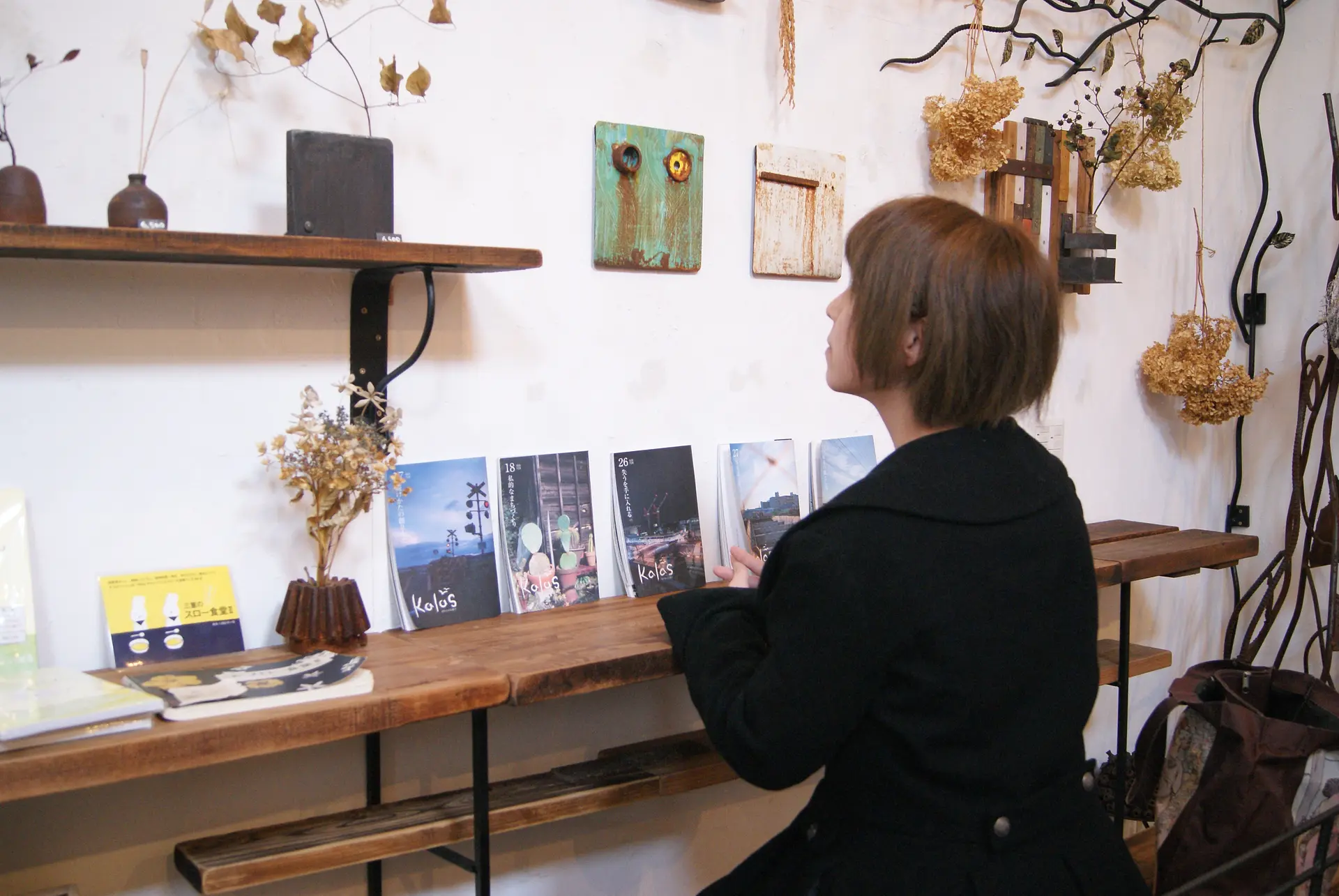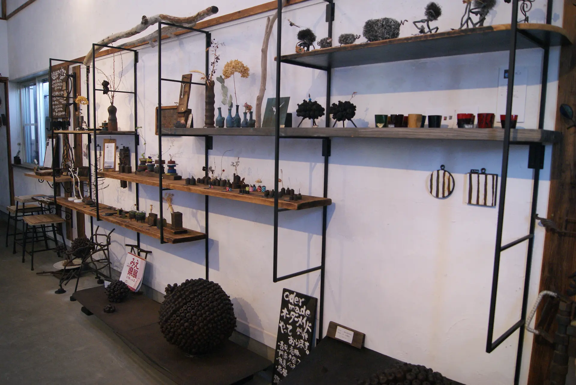 店内の商品を見ているだけで、あっという間に時間が過ぎていきます。木のぬくもりも感じる、落ち着いた雰囲気がこのギャラリーの魅力。このお店は、1階がギャラリー、2階がカフェスペースになっています。