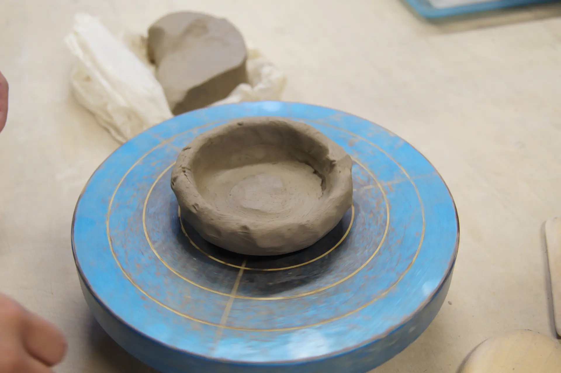 林先生に教えてもらいながら、最初に器の底となる部分をつくっていきます。ここからどのように仕上がっていくのか、期待が高まります!