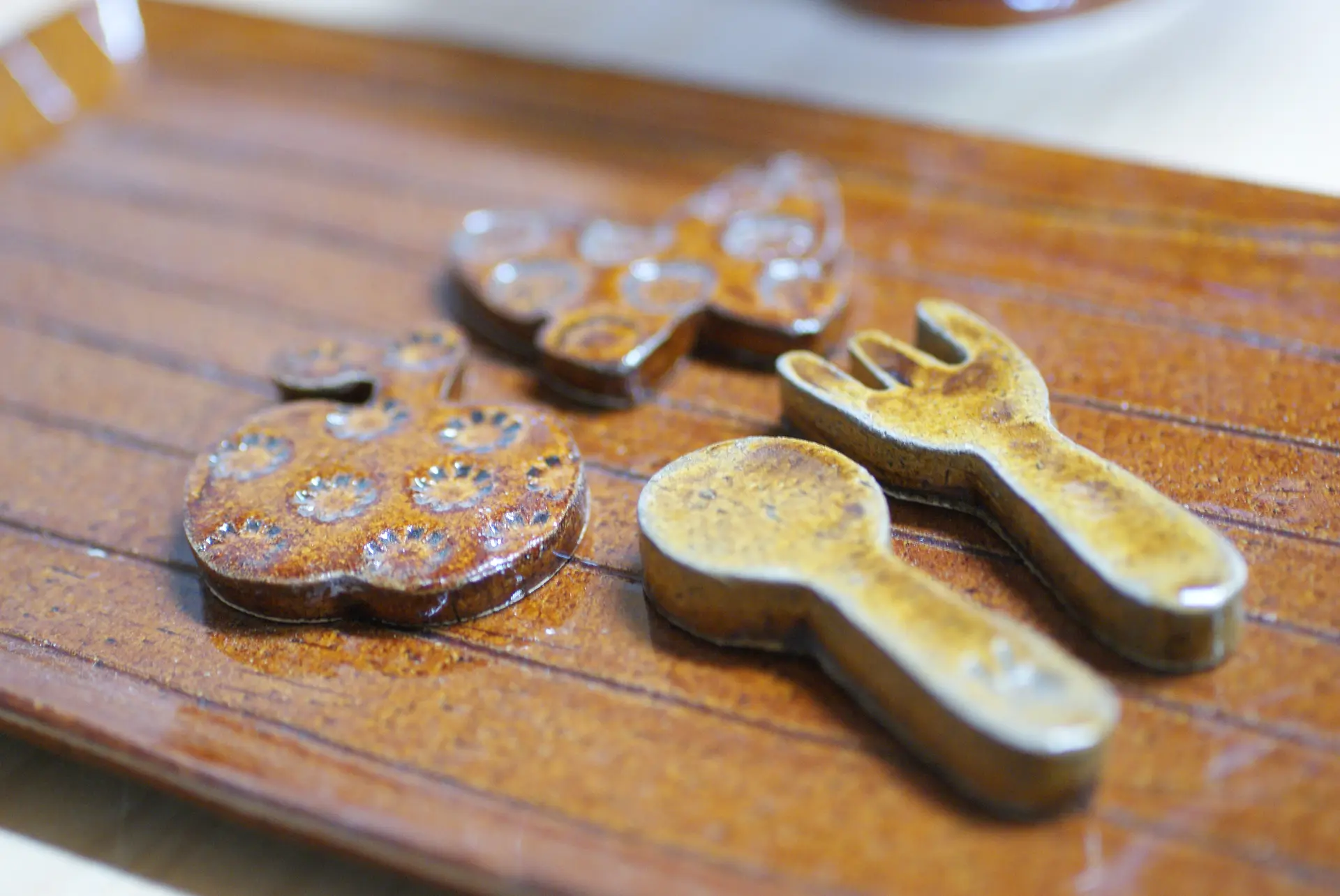 また、余った粘土を使って小物をつくり、箸置きにするなど、アイデア次第で自分流のオリジナル作品をつくるのもおすすめ!(小物は1個250円/税込)。