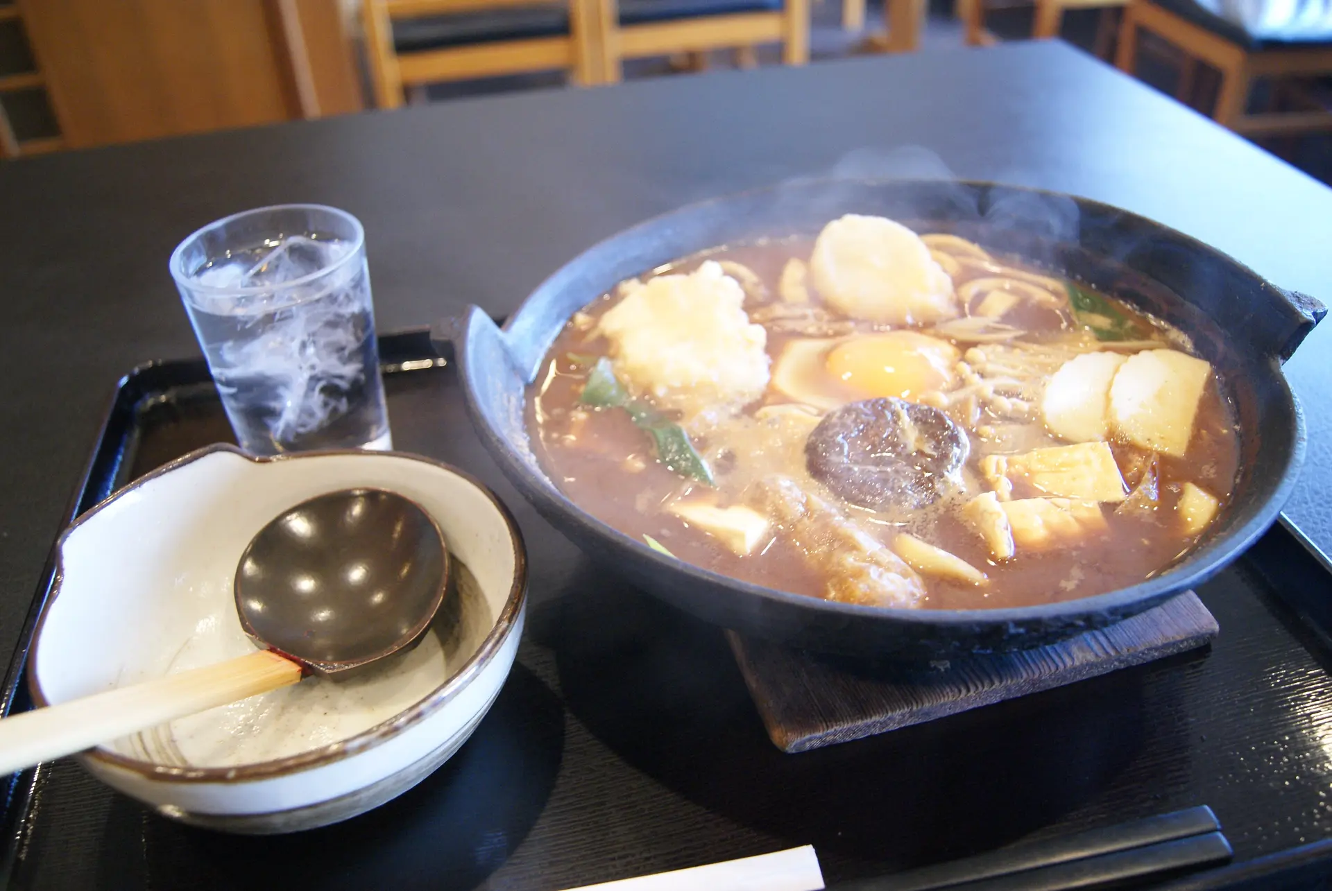 ほかにも、うどんのメニューも豊富で、期間限定のメニューもあり。冬季にはカキ味噌煮込みうどん、夏季には五目冷やしうどんを味わうことができます。
