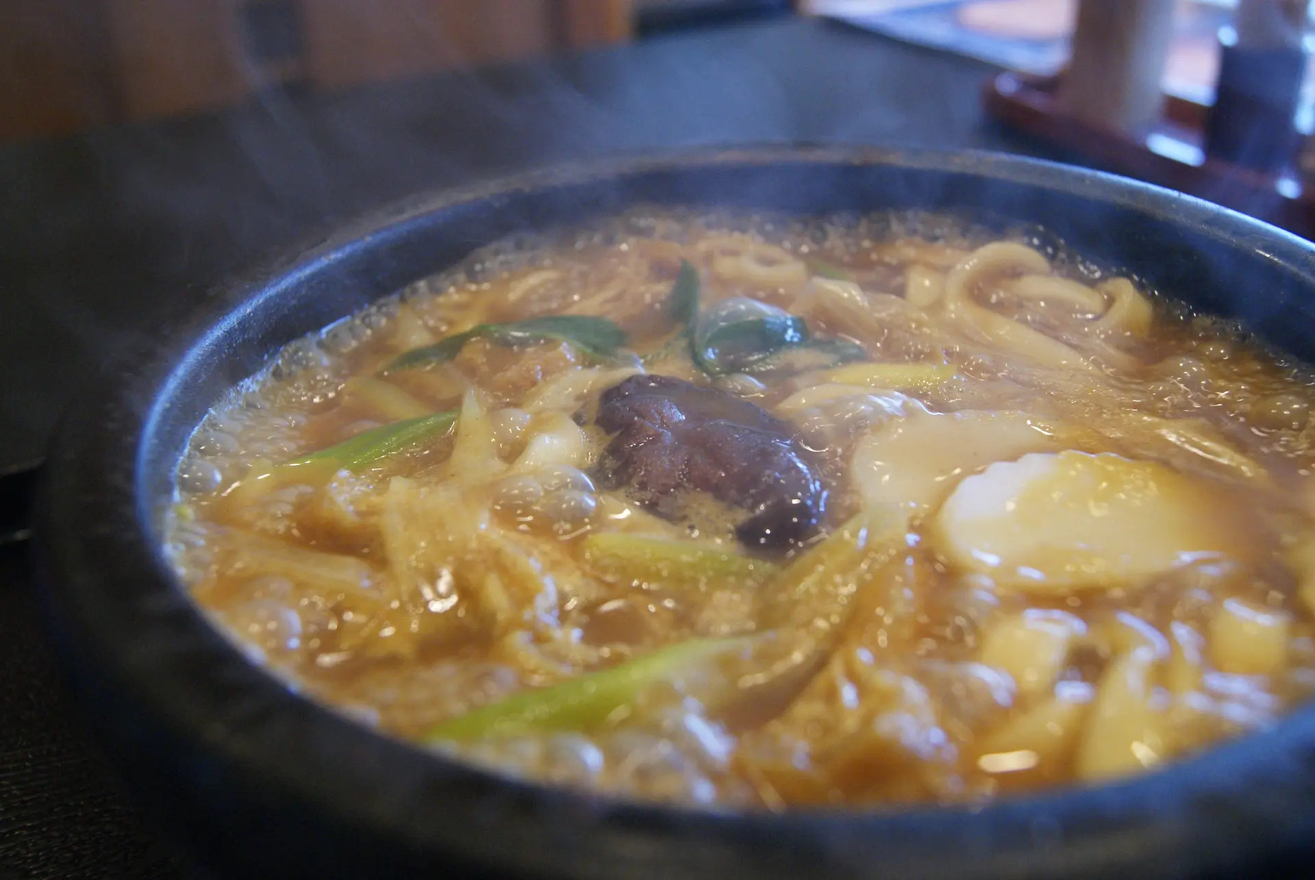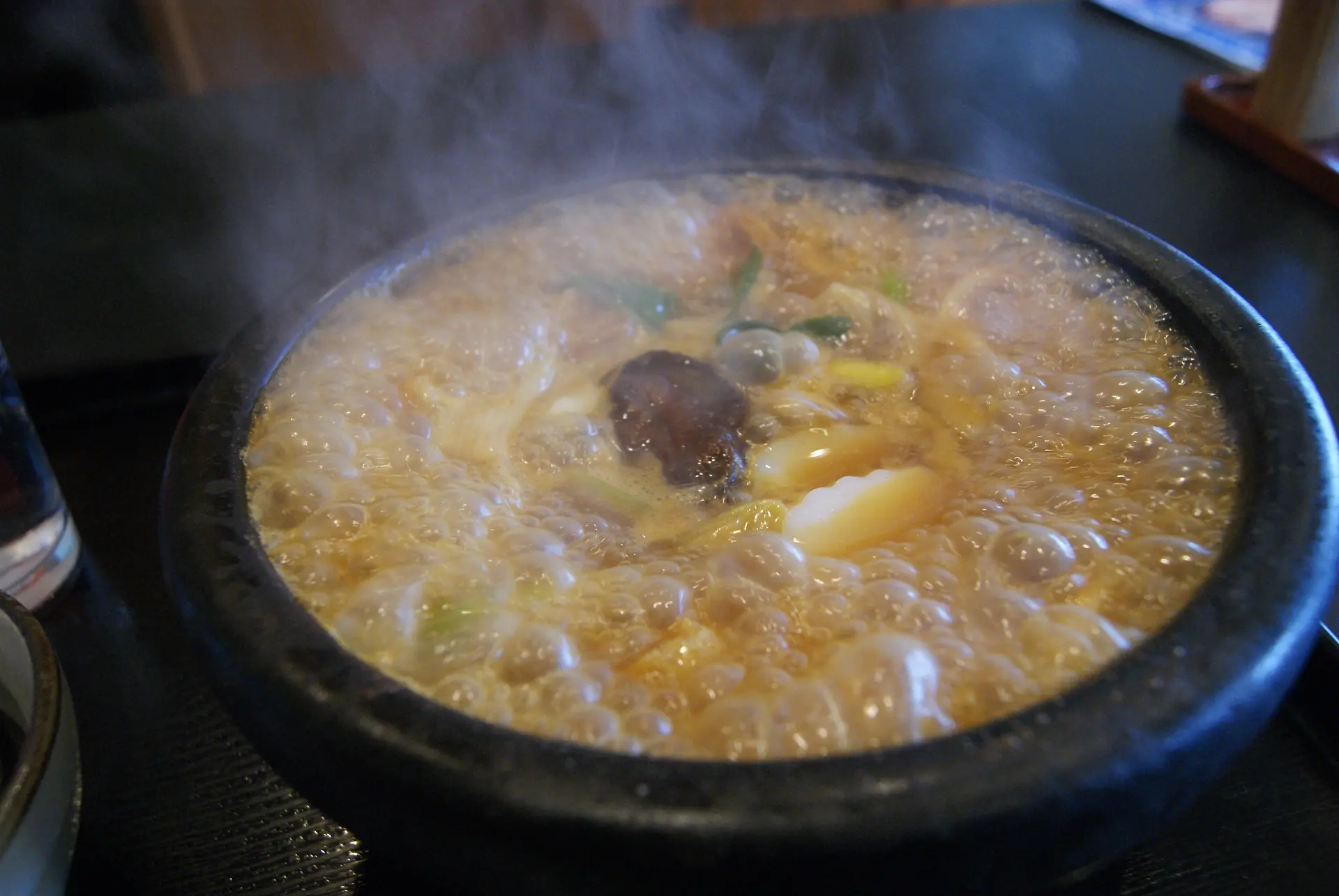 運ばれてきた器を見てびっくり!グツグツと今にもこぼれそうなほど煮立ったつゆの迫力といったらもう!その勢いよく煮え立つ音だけでもおいしさを確信。