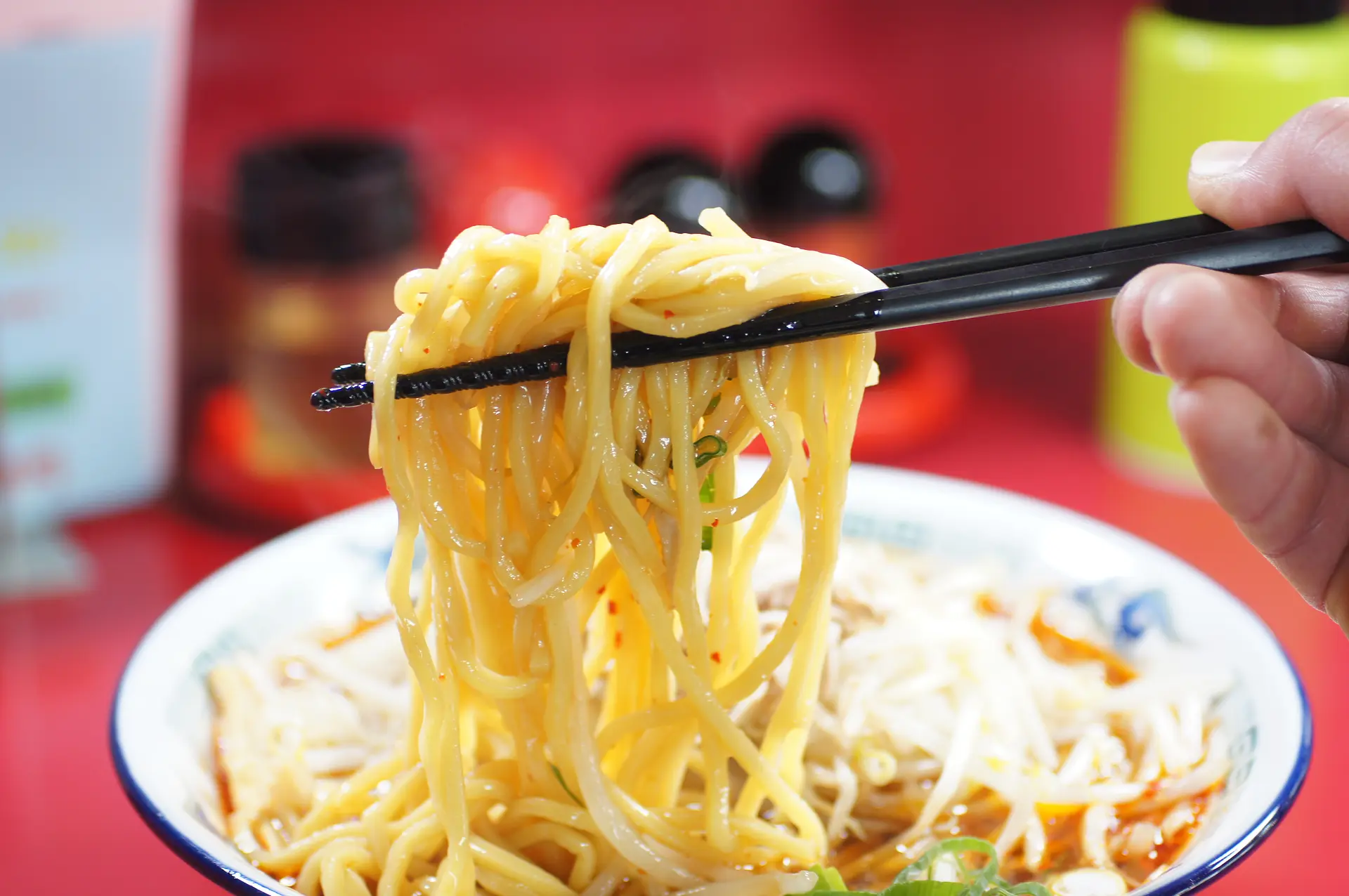 早速人気メニューの「辣椒(らっしょう)ラーメン」(800円/税込)を頼んでみました。スープのベースは豚骨スープで濃厚かと思いきや、まろやかな味わいです。赤唐辛子に数種類の唐辛子をブレンドした特製ラーメンで、きつい辛さではなく、何度も食べたくなるクセになる味です。