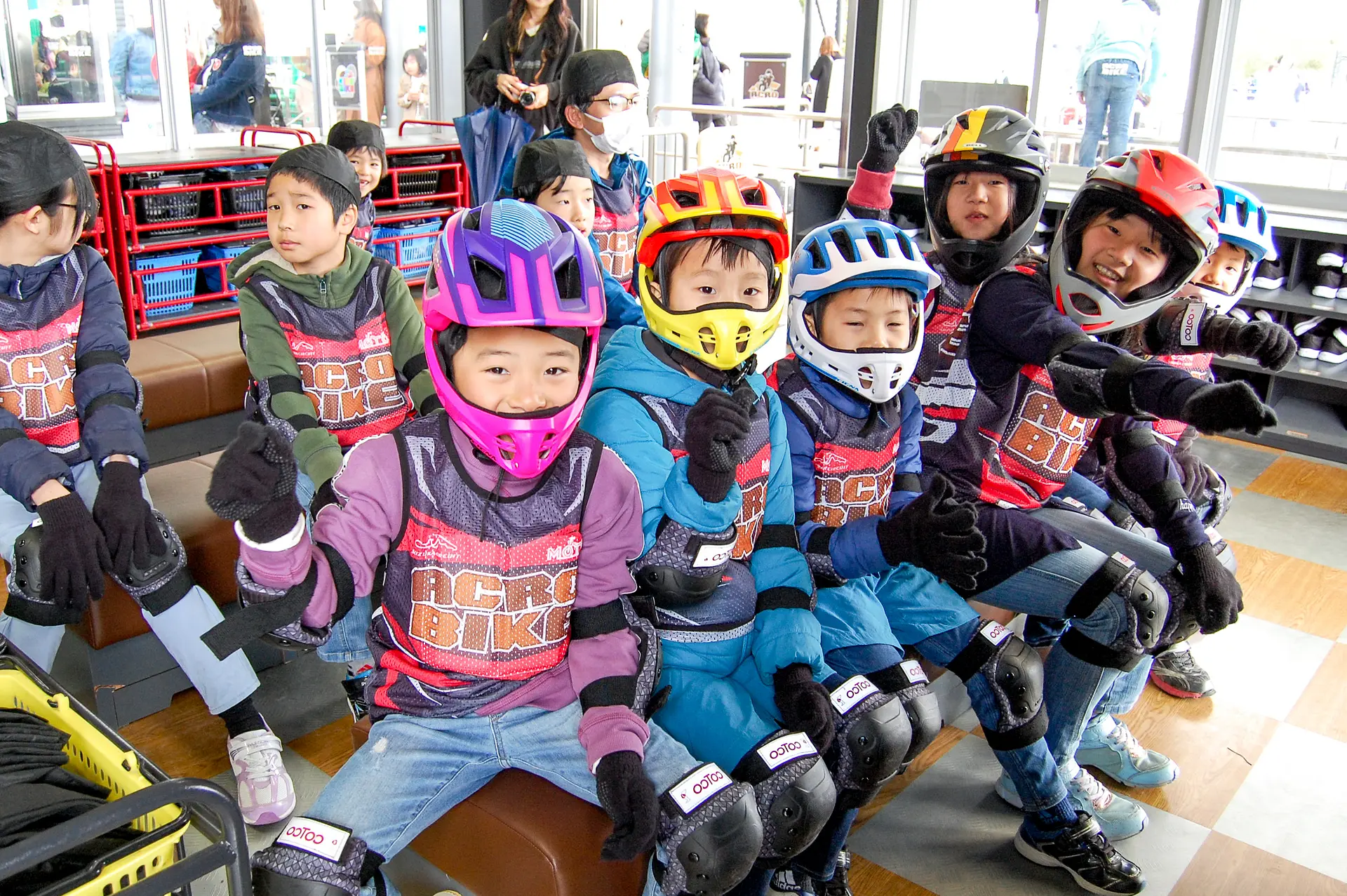 カッコいいヘルメットやビブスも装着して、気分はライダー♪