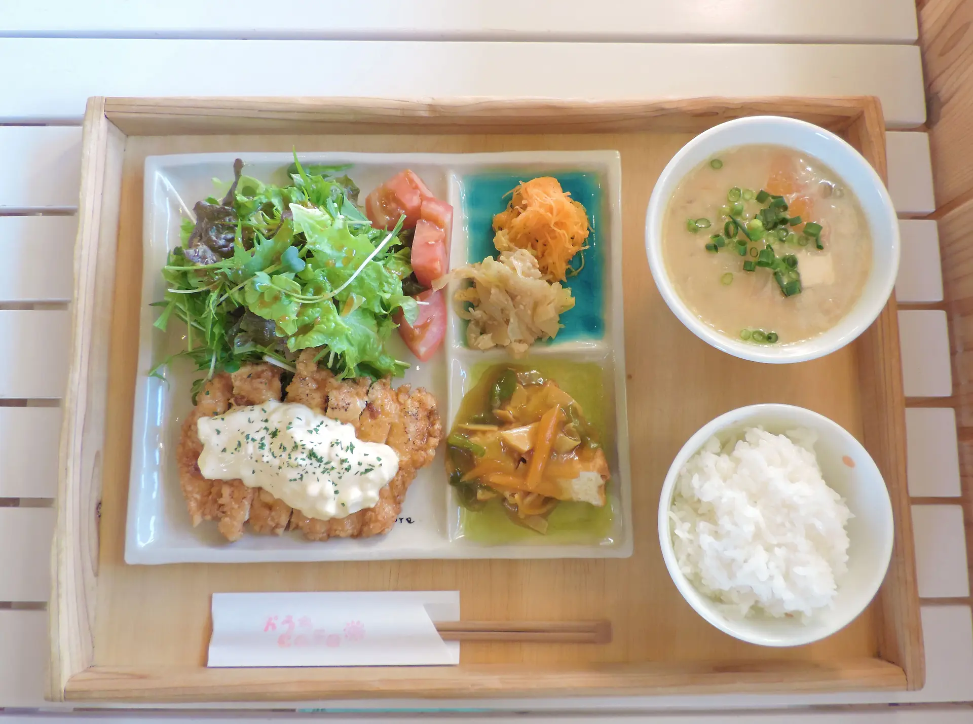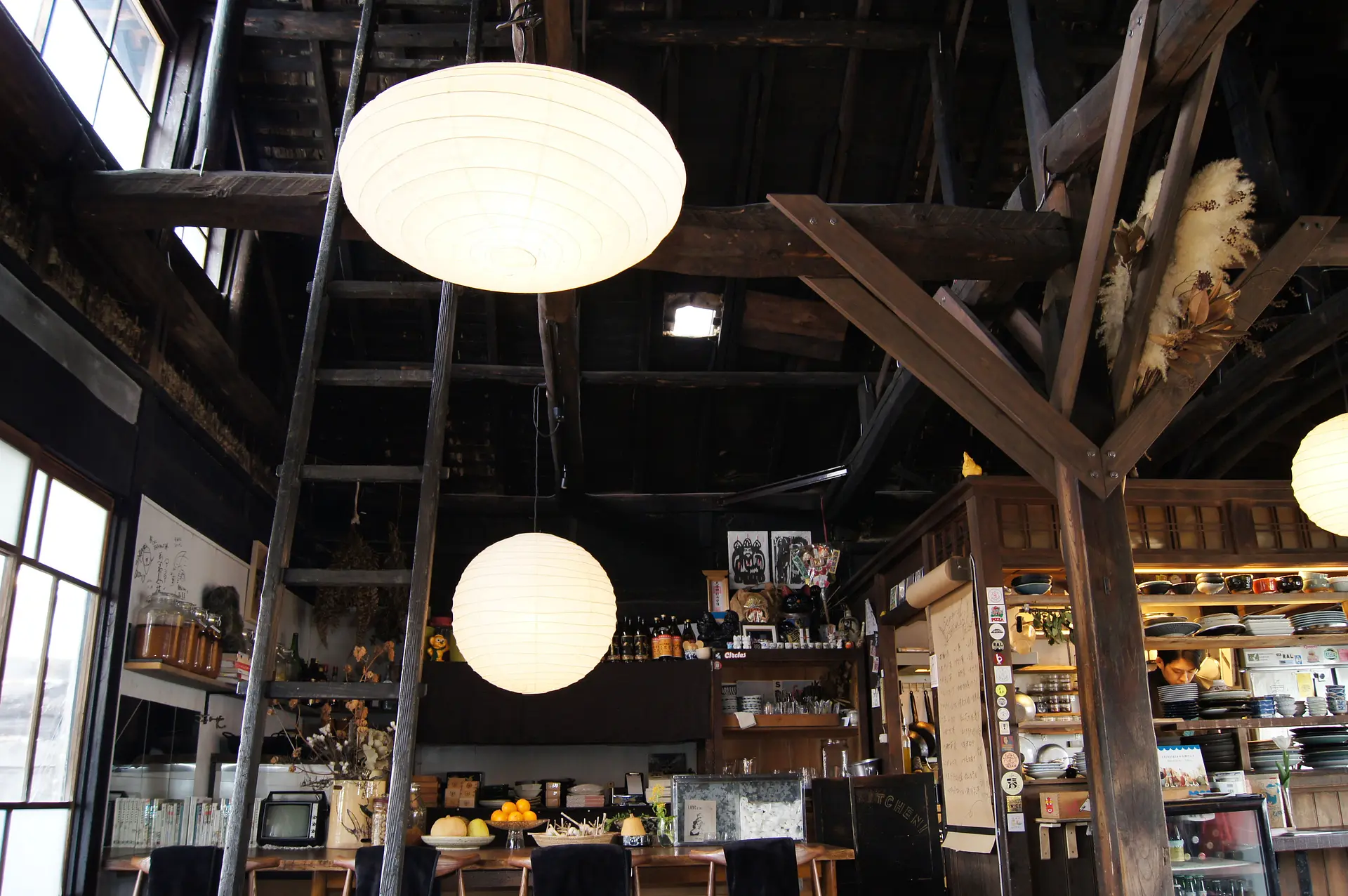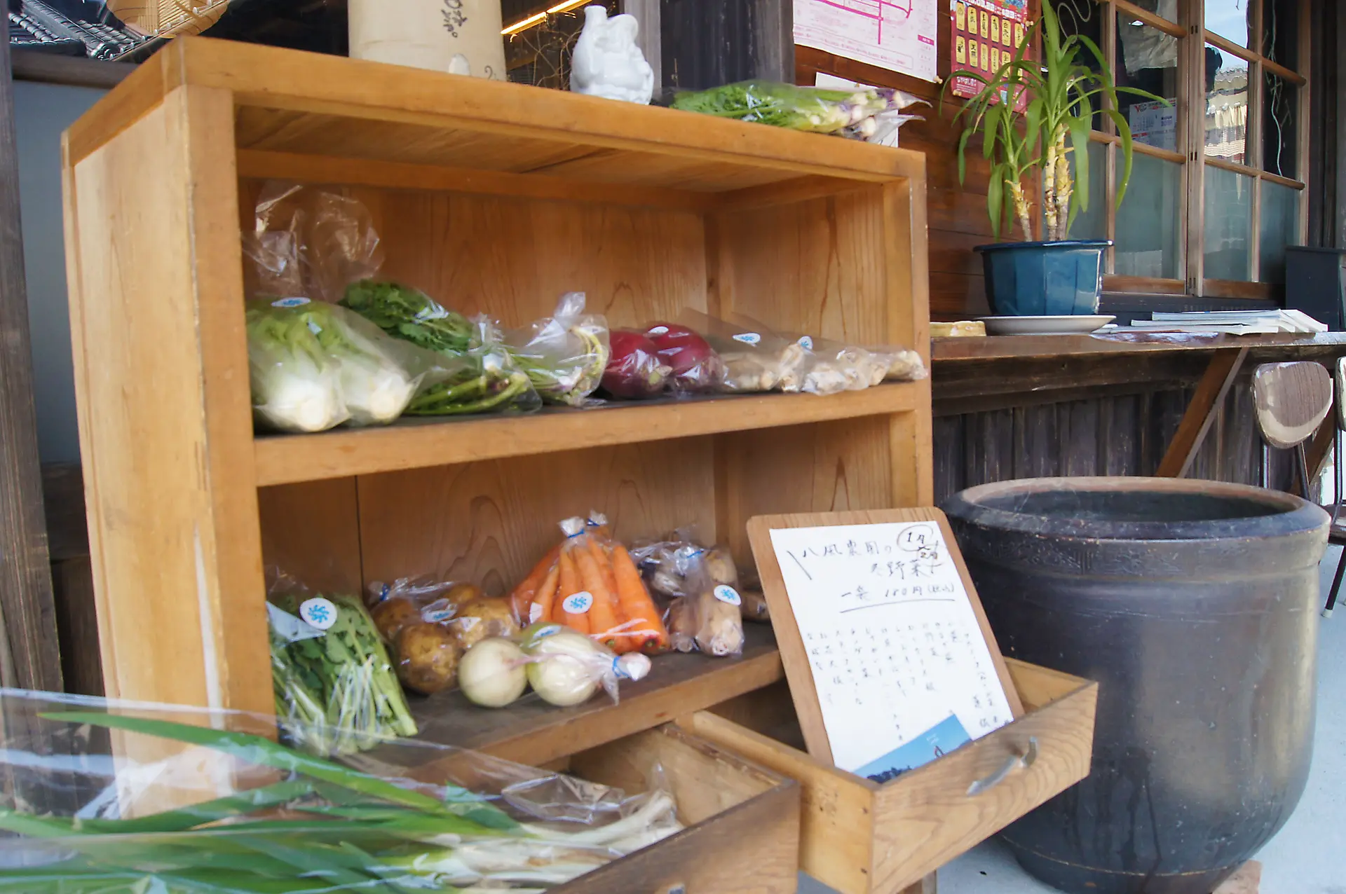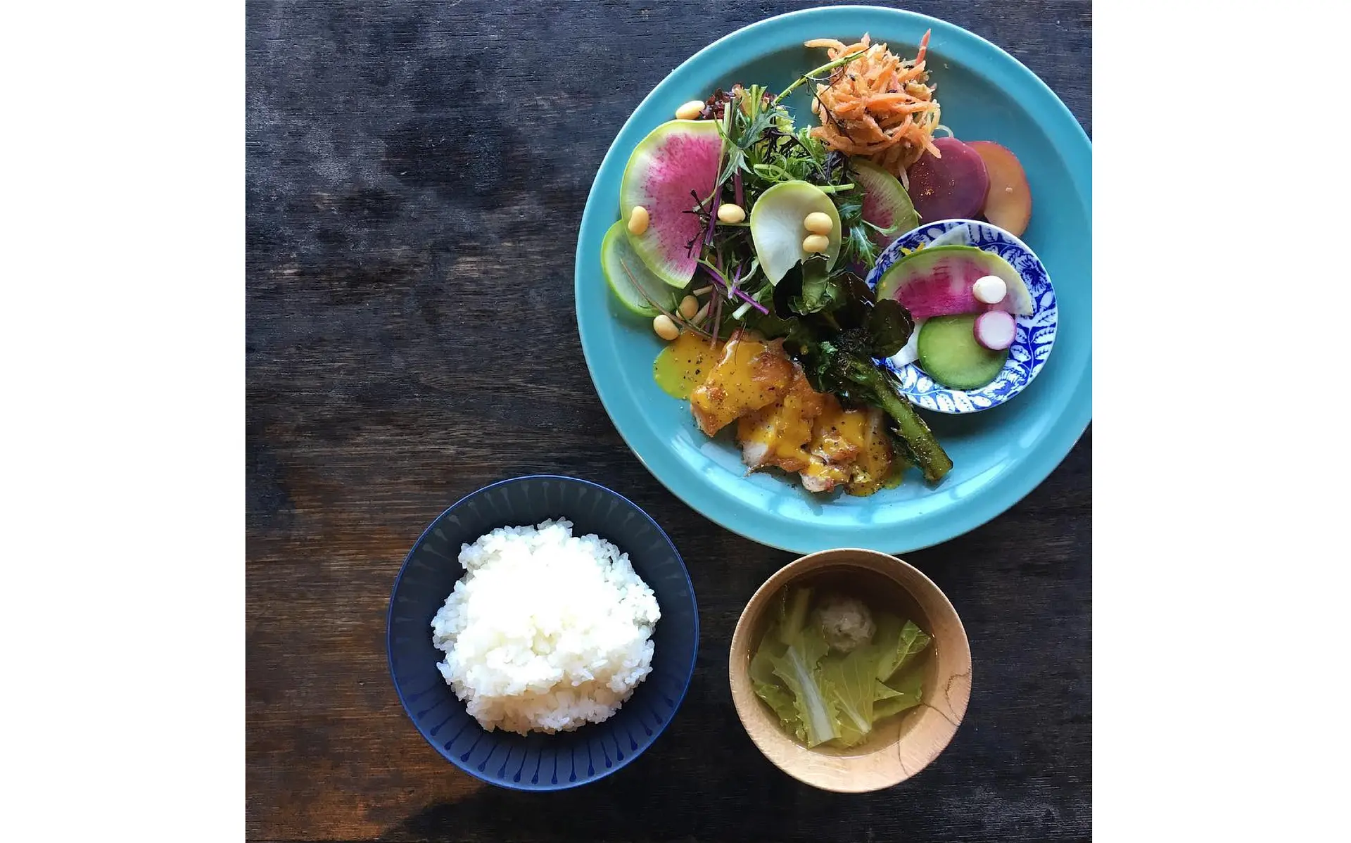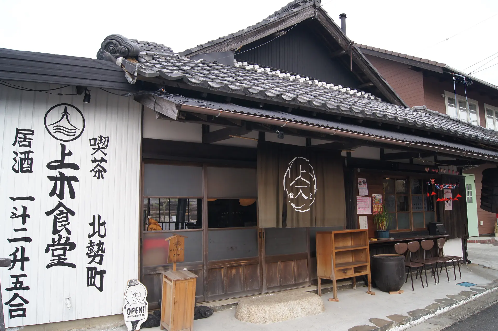 旅館だった建物を改装し、食事処として生まれ変わらせた「上木(あげき)食堂」。レトロな雰囲気の店内の空気は、まるでタイムスリップしたかのような気持ちに。地元の農園で育てられた有機野菜を使ったヘルシーなメニューが食べられるお店です。