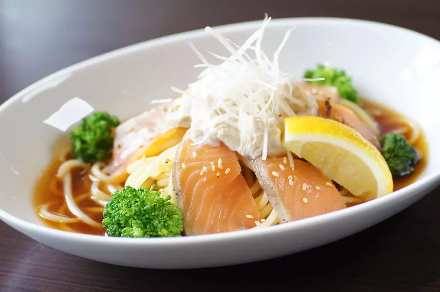 写真は、「スモークサーモン生湯葉の和風パスタ」(1,000円/税込)。