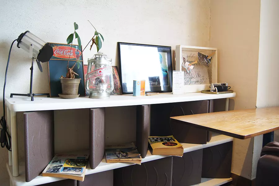 コンクリート張りの建物が、ユニークな雑貨などによって、おしゃれに彩られています。