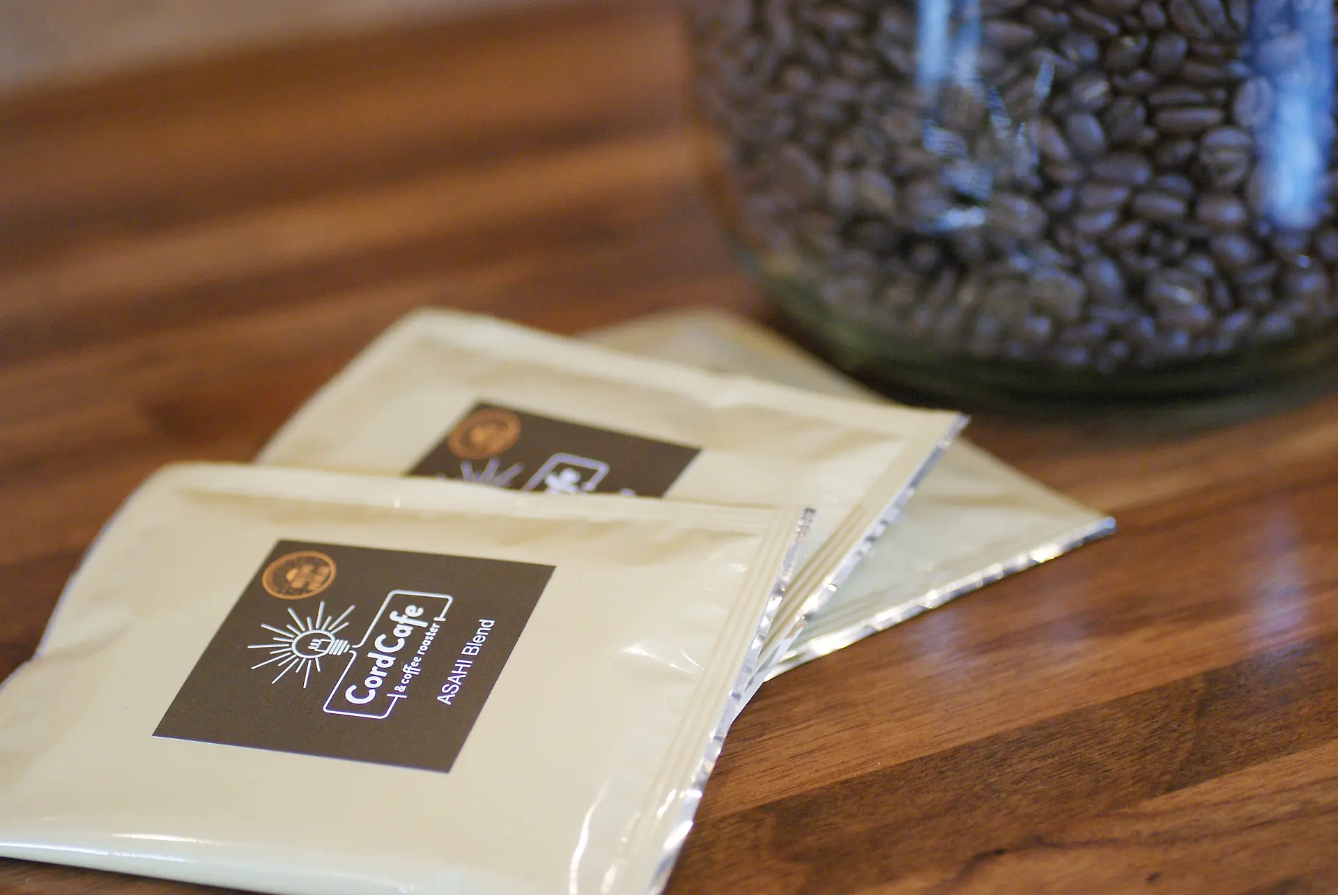 朝日町の名前の由来となった「太陽」をイメージさせる、明るく華やかな香りとほどよい酸味を兼ね備えたオリジナルブレンド。もちろん、店内で飲むこともできます。