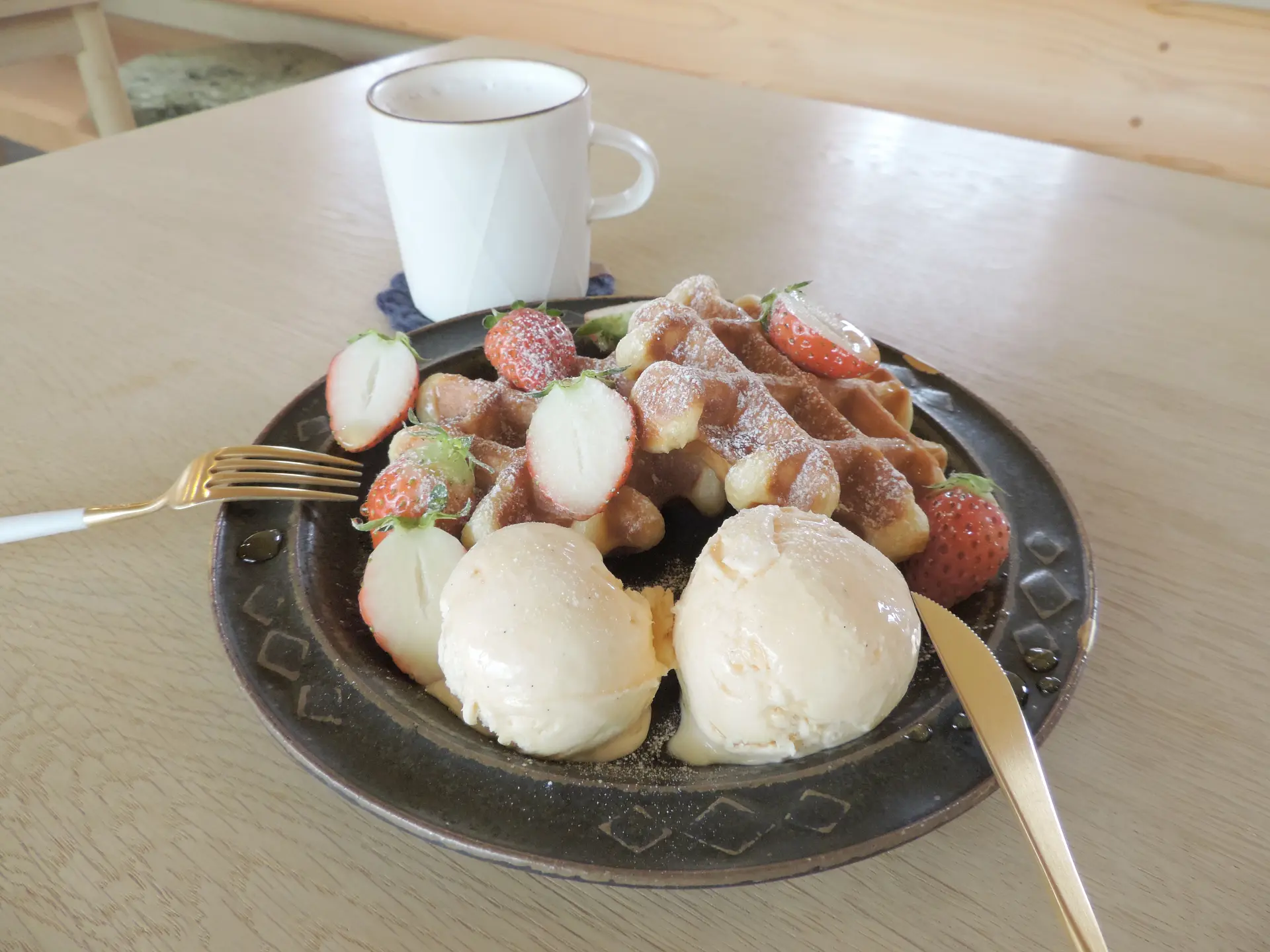 天然酵母を使った「しっかり食感」のワッフルは、くどくない甘さ。