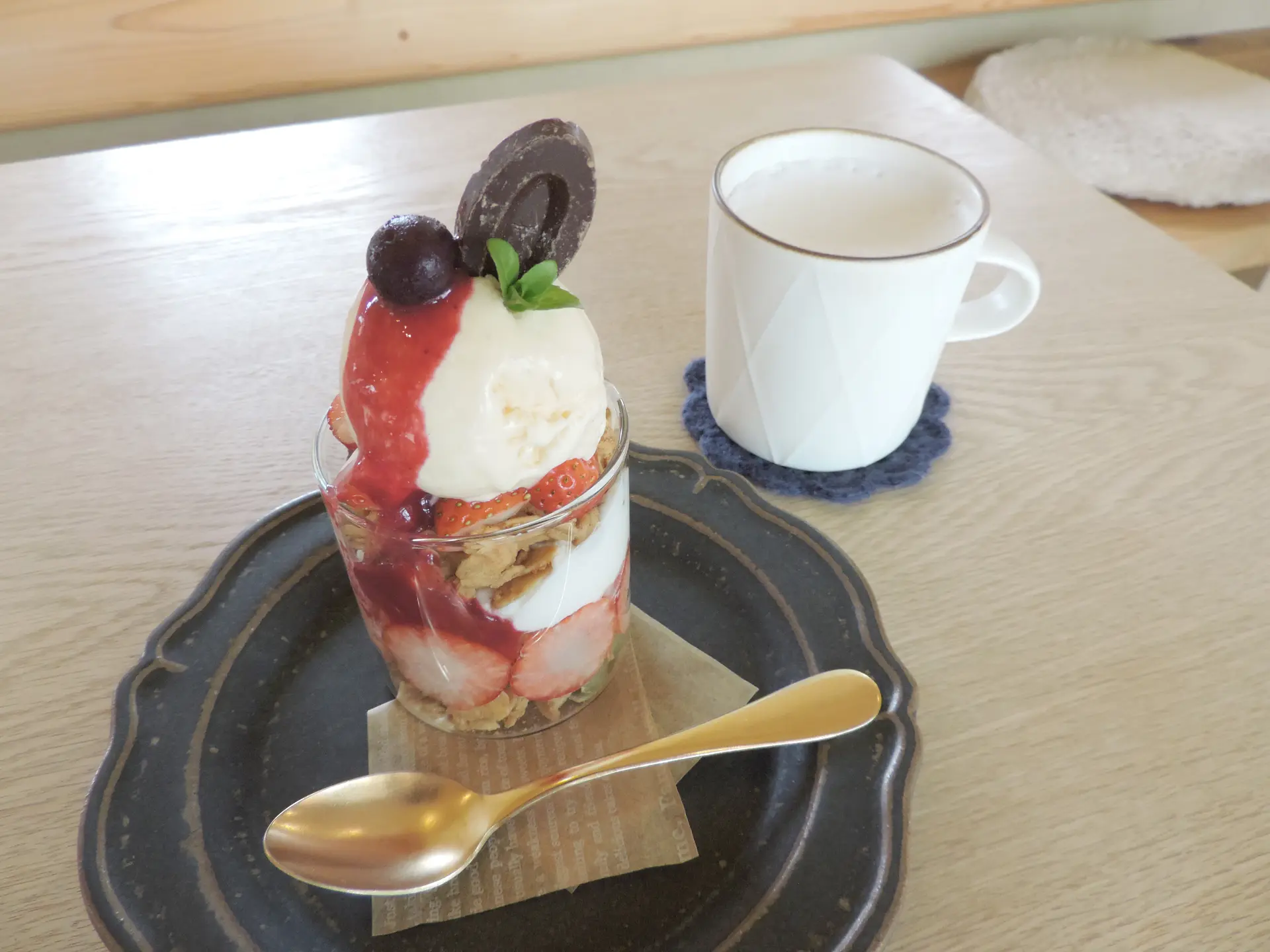 地元のいちご農家から仕入れた新鮮ないちごと、香ばしい「酵母グラノーラ」、そして濃厚なバニラアイスの「おいしい共演」です!