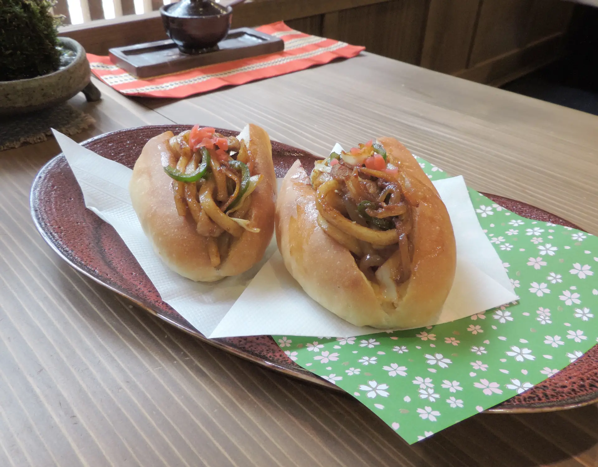 ふわふわのコッペパンが、みそダレがしみ込んだうどんのおいしさを引き立てています!