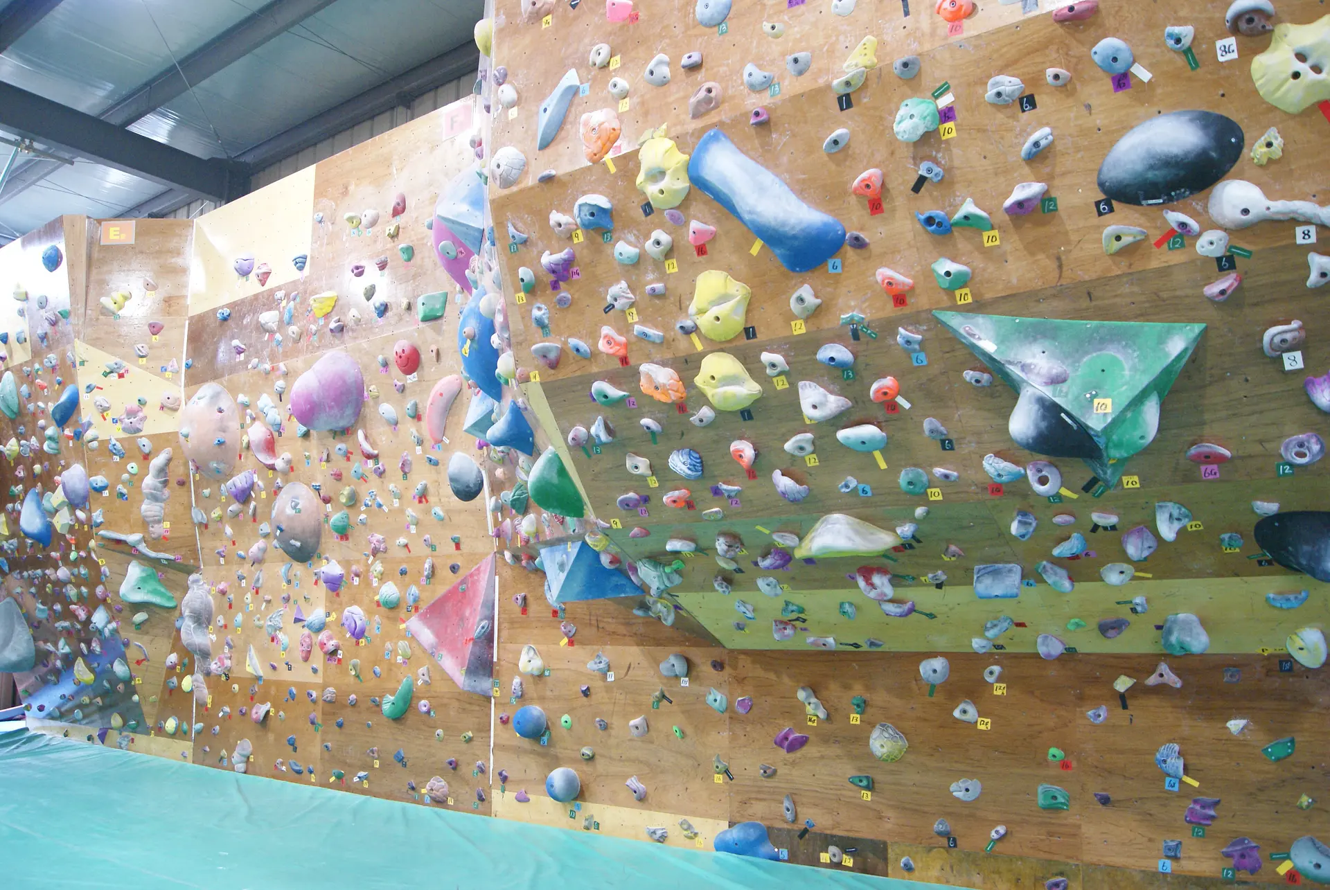 壁に付いているカラフルな突起物は「ホールド」と言い、これを使って壁面を登っていきます。