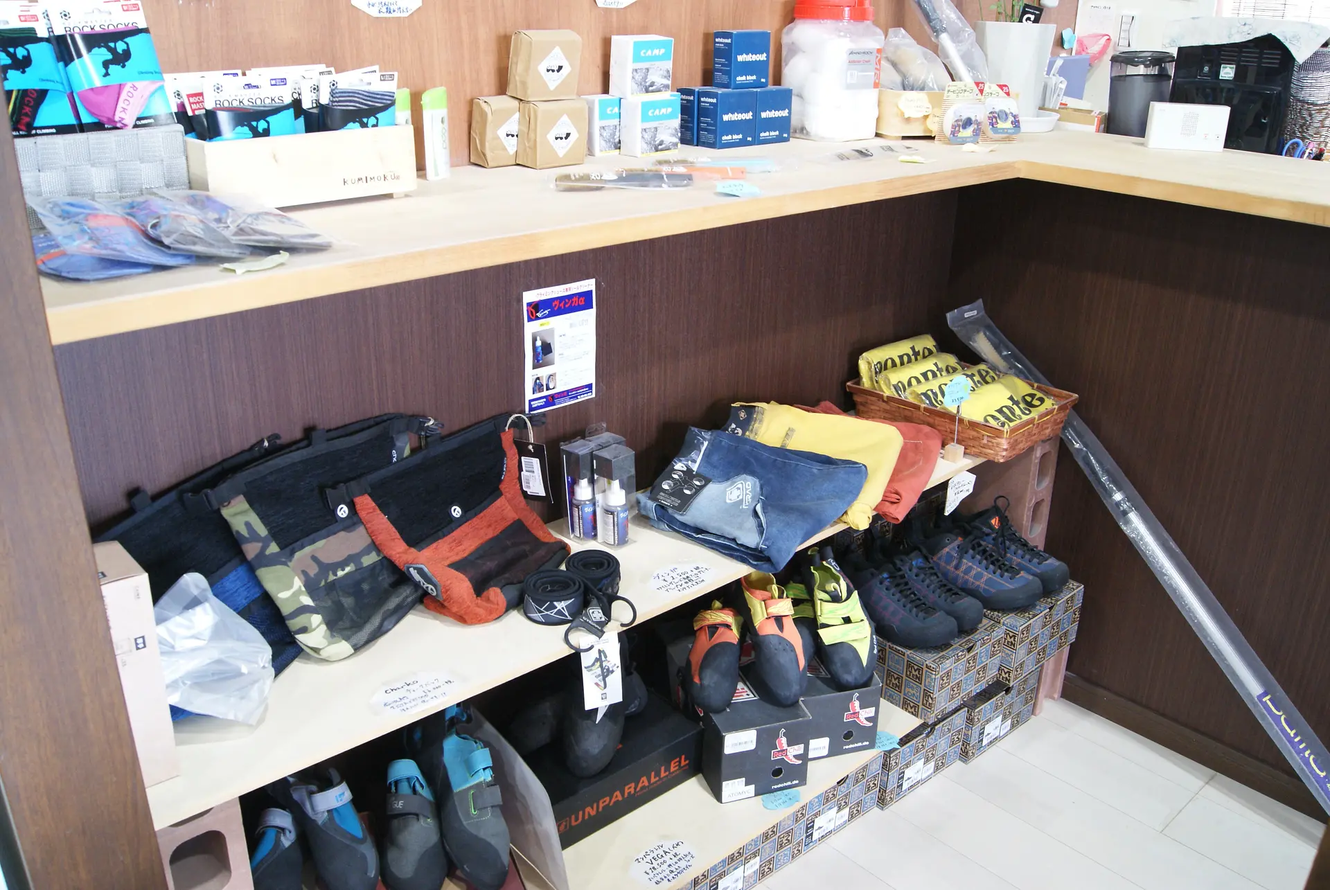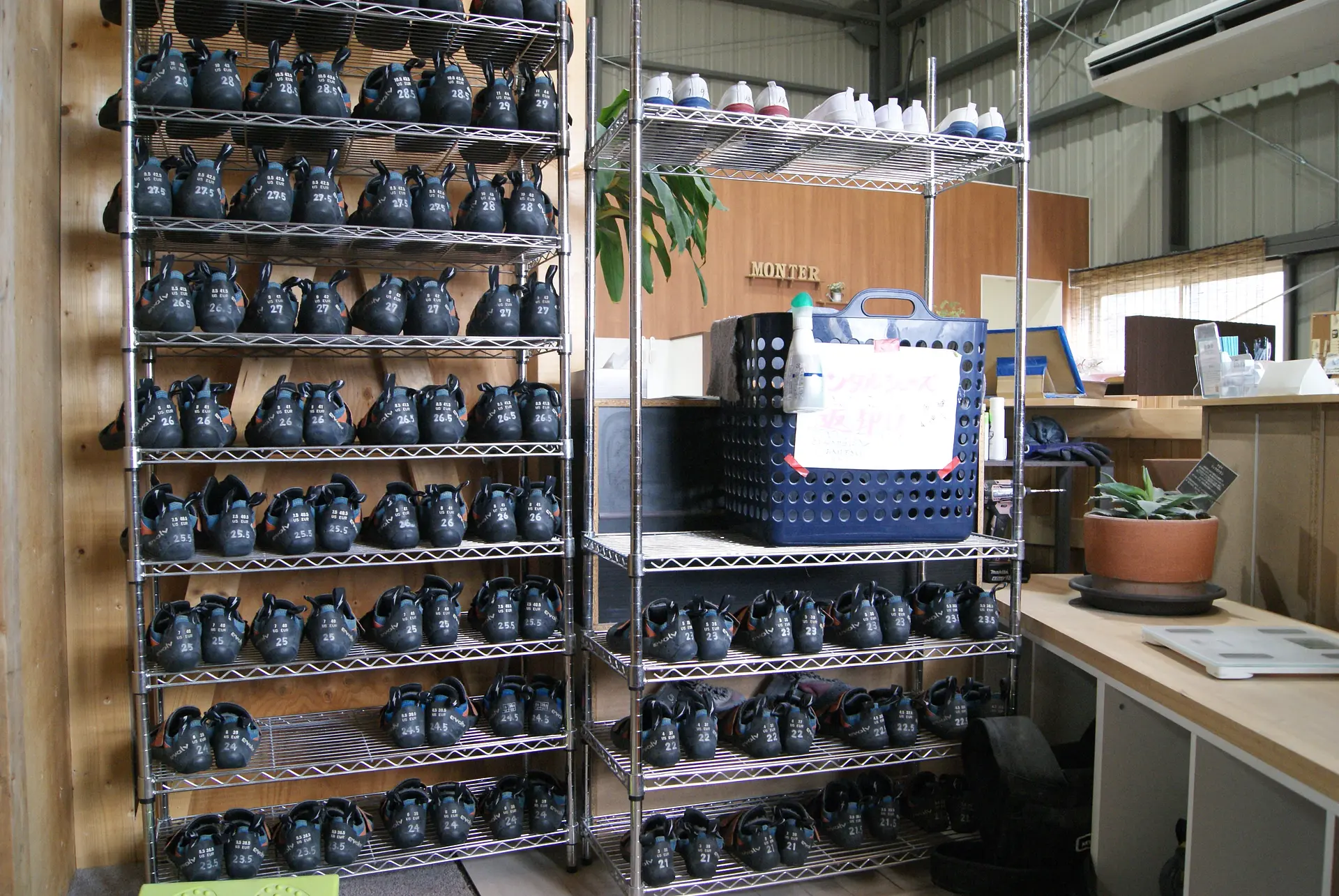 「初回体験クライミング」では、シューズと、滑り止めの粉を入れるチョークパックを無料でレンタルできます。