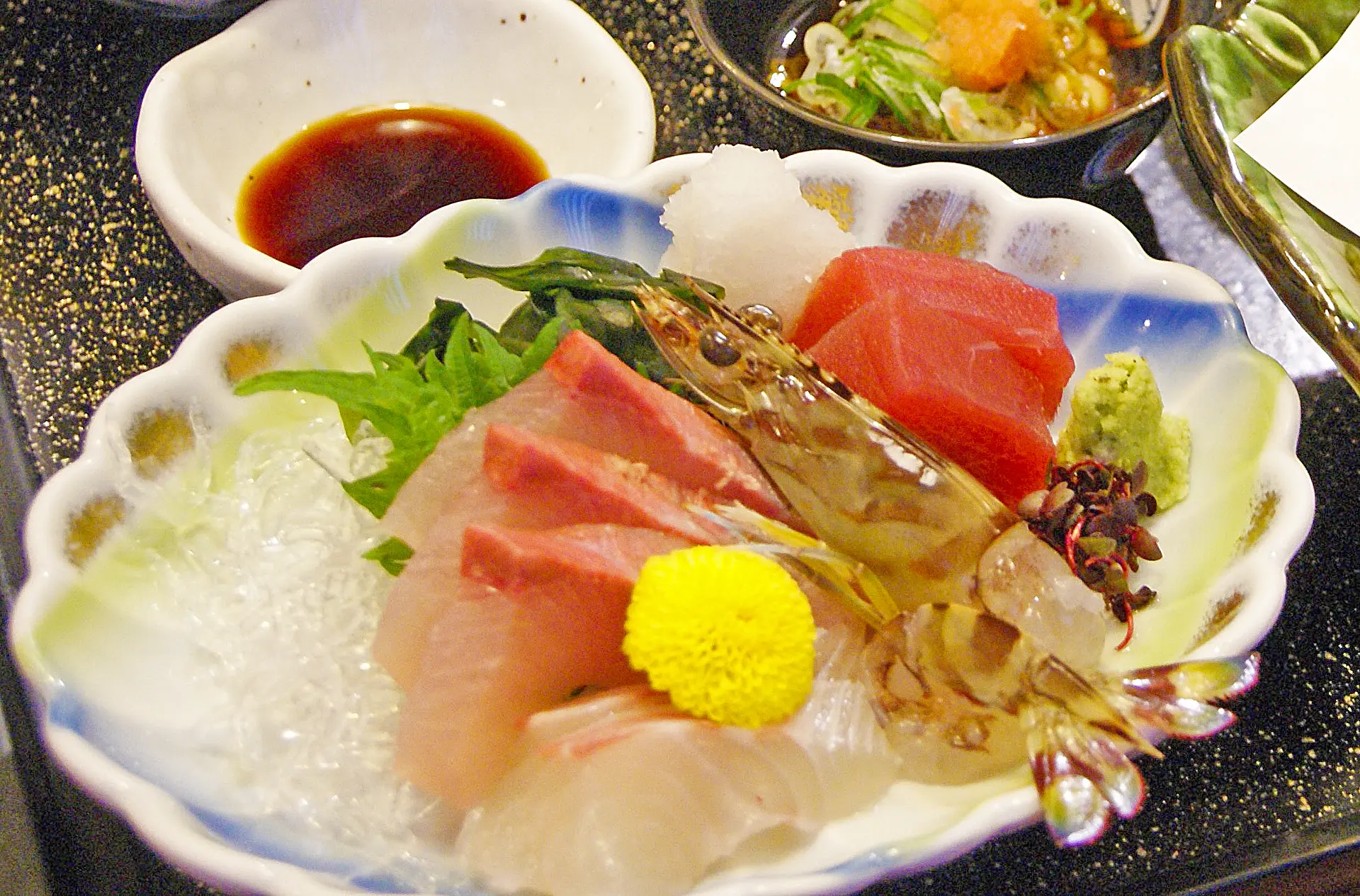その言葉を料理が運ばれてきたときに確信しました。それもそのはず、お造りのエビがまだ生きているのです!