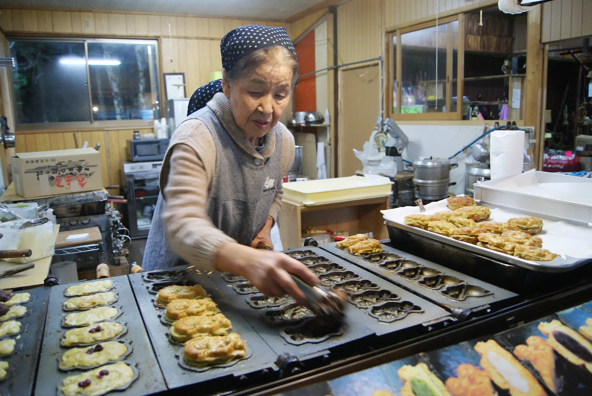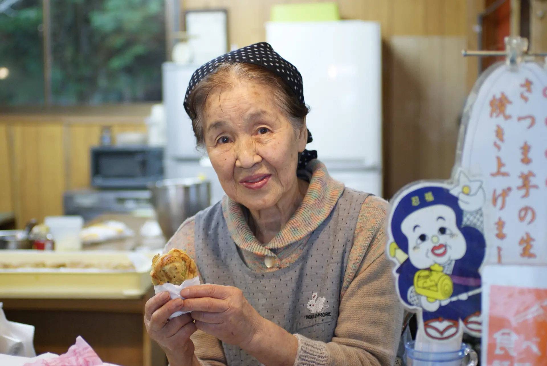 店頭で、女将さんが一つひとつ丁寧につくり上げていきます。旅の醍醐味の一つは、その地域の人たちとのふれあい。明るく優しい女将さんの人柄に心が和みます。