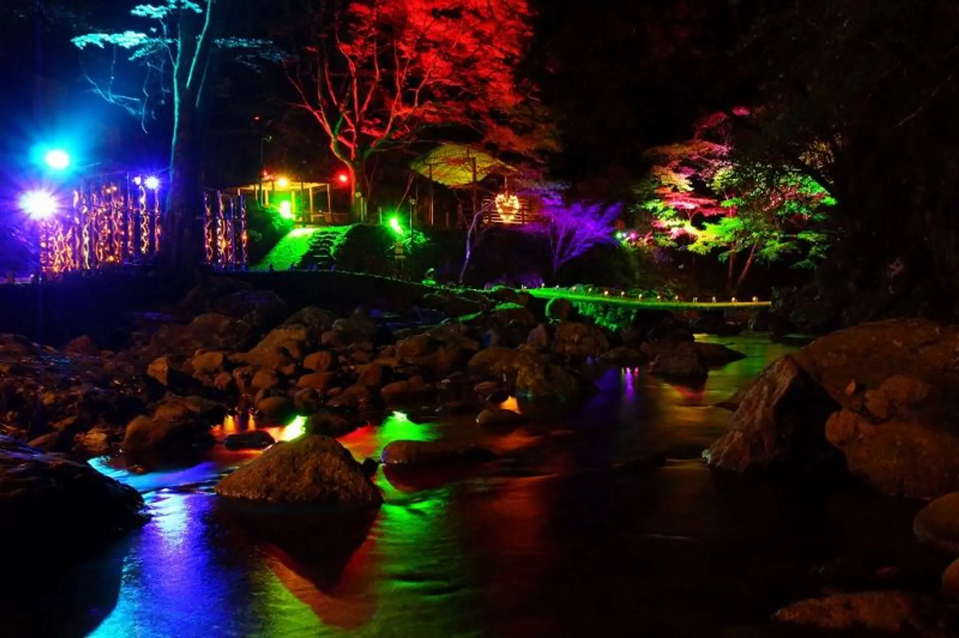 七色に変化する明かりが、渓谷をより幻想的な空間に演出します。大人のデートにもぴったり!
