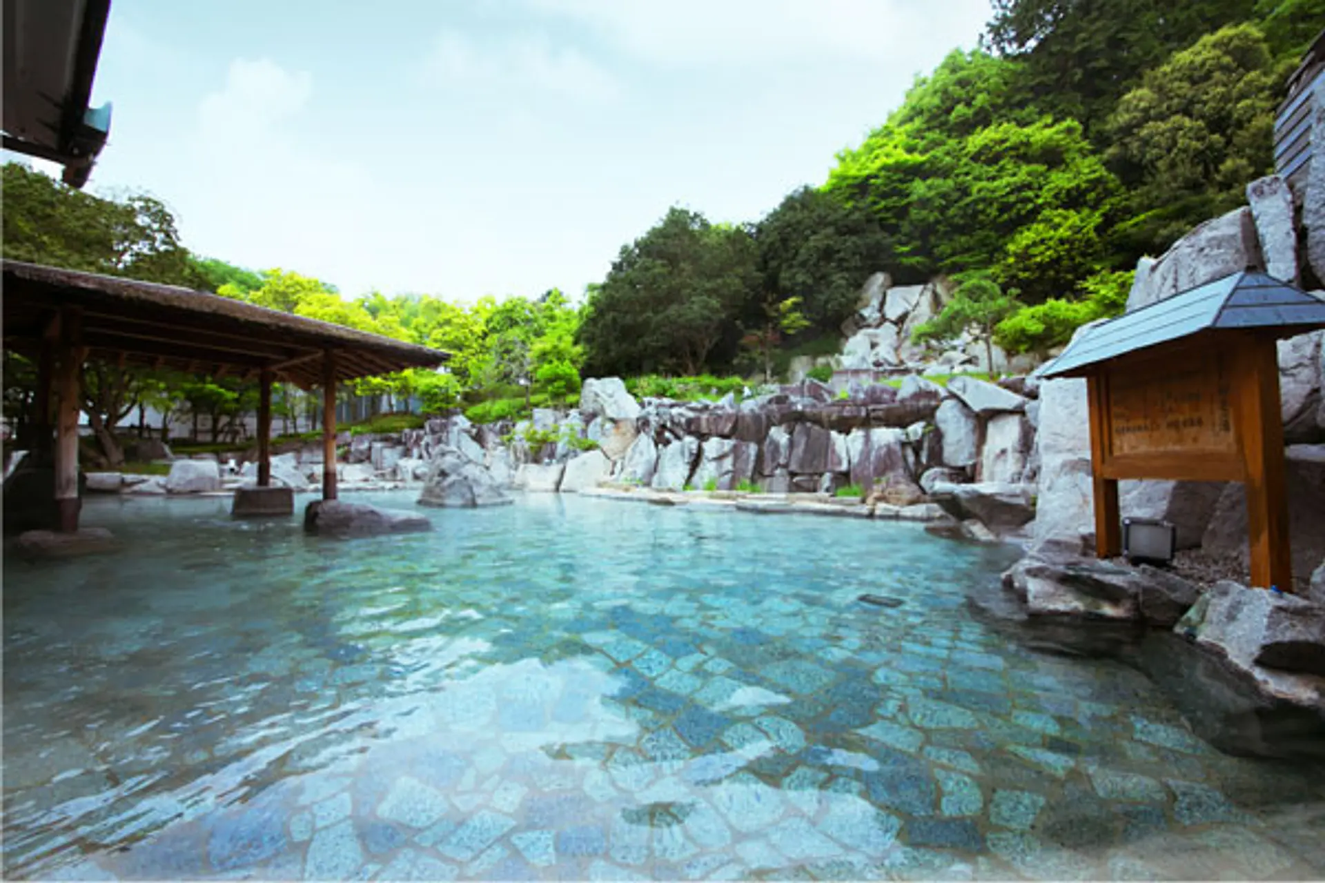 露天風呂の広さは、三重エリア最大級。無色透明のアルカリ単純泉のお湯は肌に優しく、女性に人気です。澄んだ空気の中で極上の癒しを提供してもらえました。