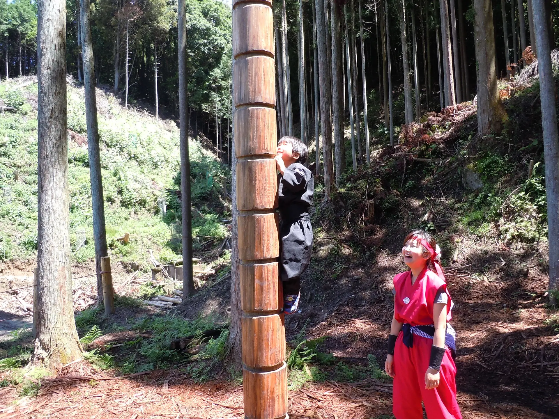 狸が木に登って隠れることに習い、身を隠す術を体験してみます。油断すると落ちてしまいそうですが、そのスリルが楽しい!
