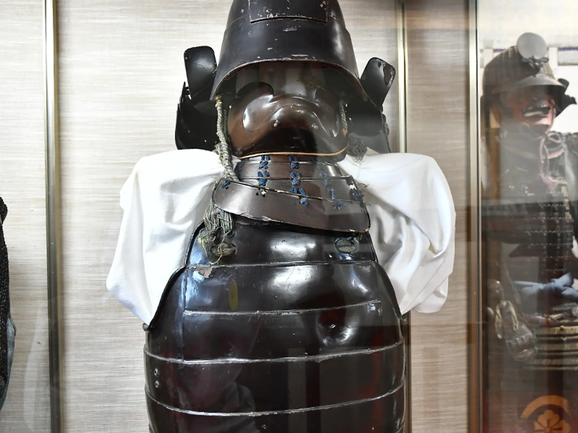試し打ちに使われたと言う甲冑。くっきりと弾の後が残っています。