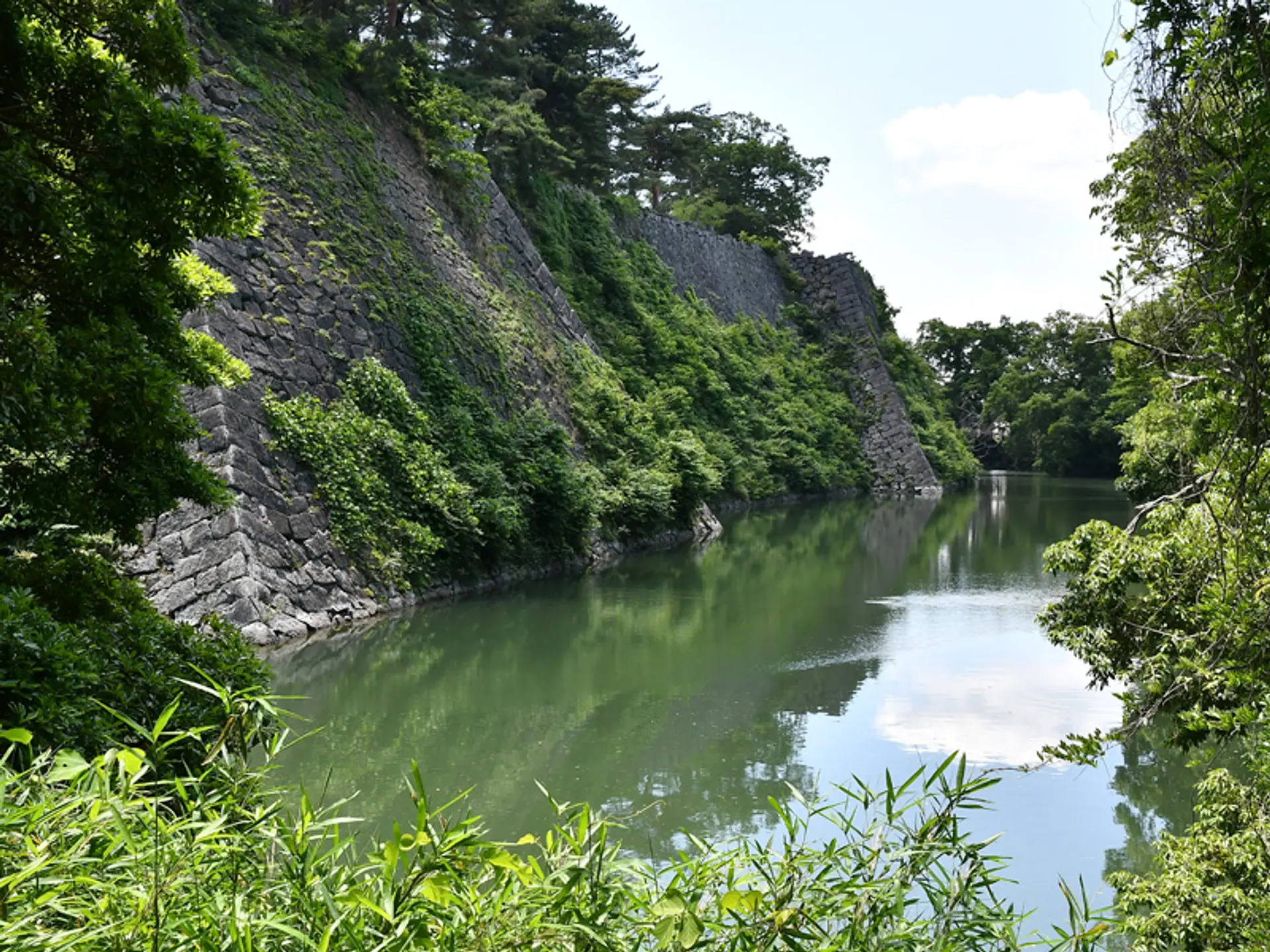 もう1人の築城の名手・加藤清正の石垣に見られる「扇の勾配」に比べ、藤堂高虎の石垣は直線的な姿をしています。