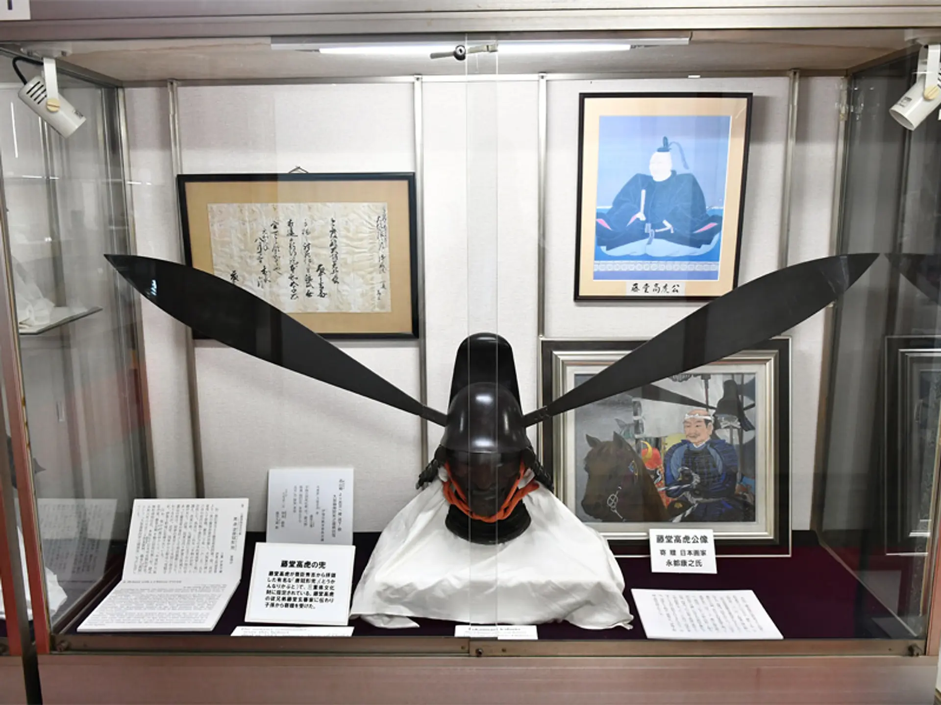 2階には日本100名城の写真、藤堂家の調度品や藩主の書画などを展示。