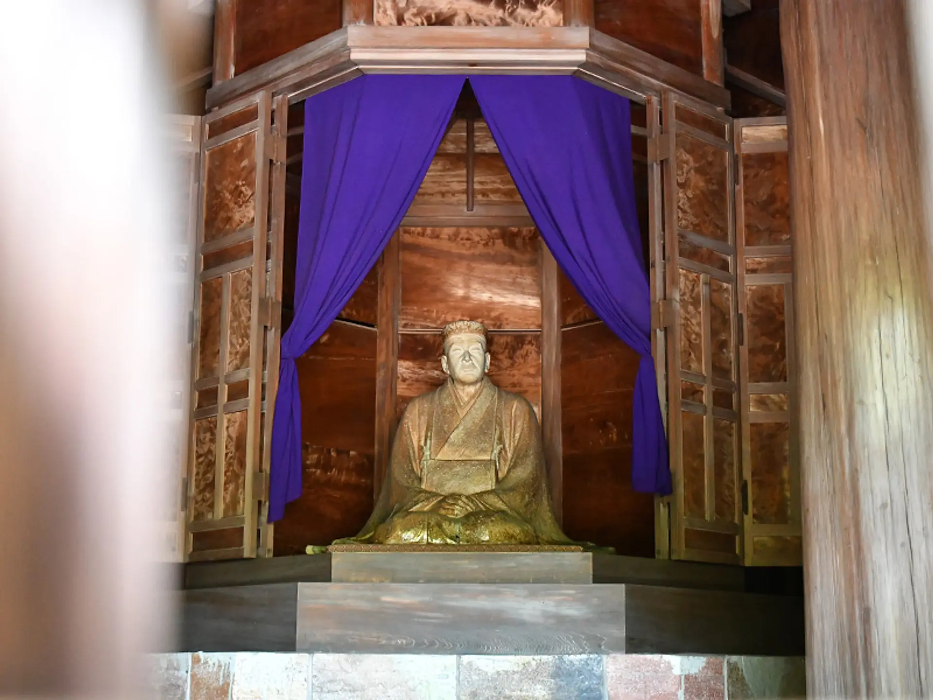 俳聖殿内には伊賀焼で作られた実物大の芭蕉翁が鎮座しています。台座もすべて伊賀焼とのことです。
