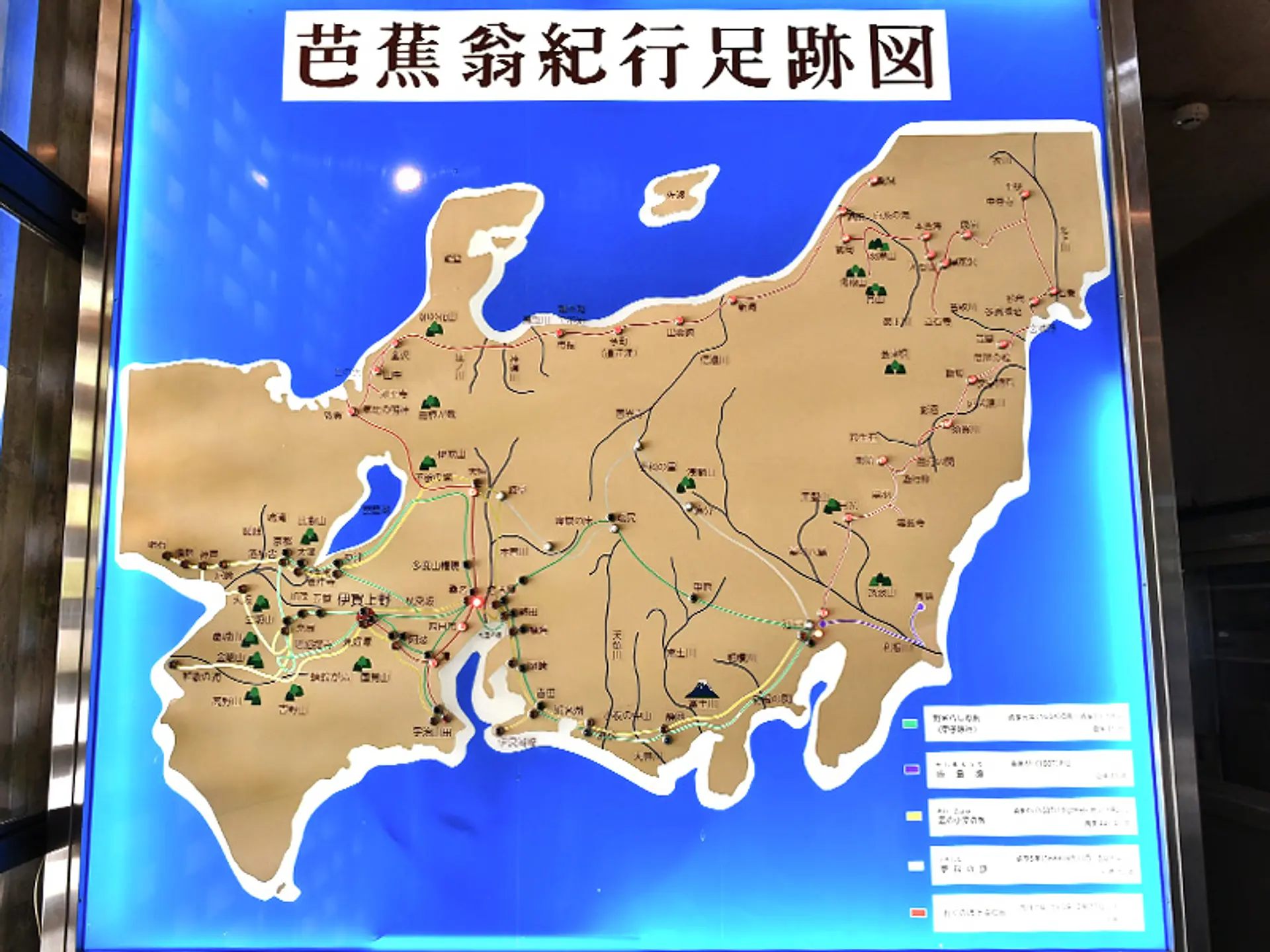芭蕉の紀行図。それぞれの旅ルートポイントが光るようになっています。