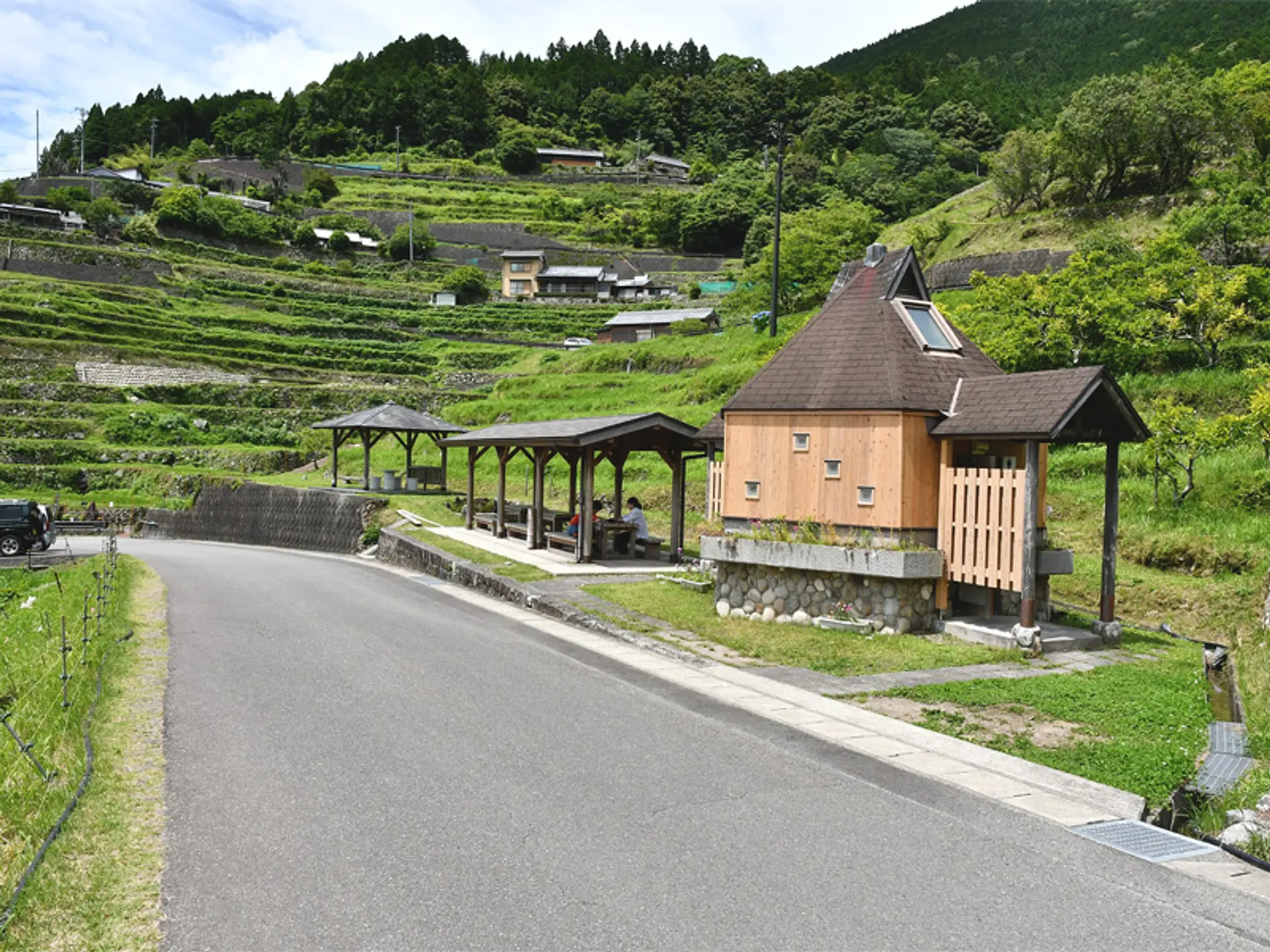 棚田中腹にある東屋。きれいなトイレも完備されています。