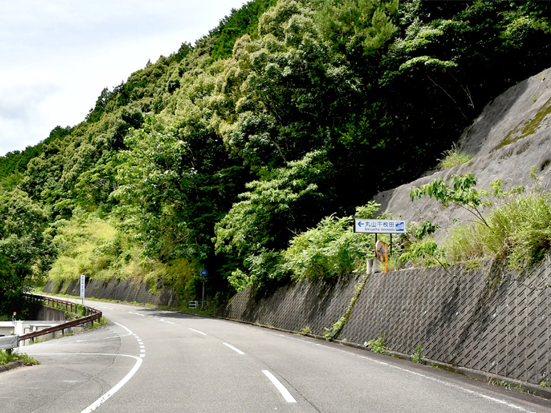 風伝(ふうでん)トンネルを抜けた先に丸山千枚田の看板を発見。右折し、県道40号線にはいります。