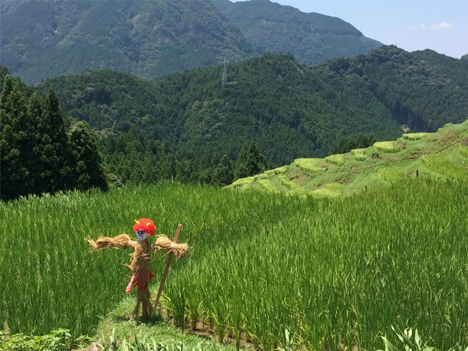 夏、徐々に穂先の伸びた稲穂が、水鏡のようだった棚田を全く別の姿へと変えてゆき、懐かしい里山の風景を楽しむことができます。