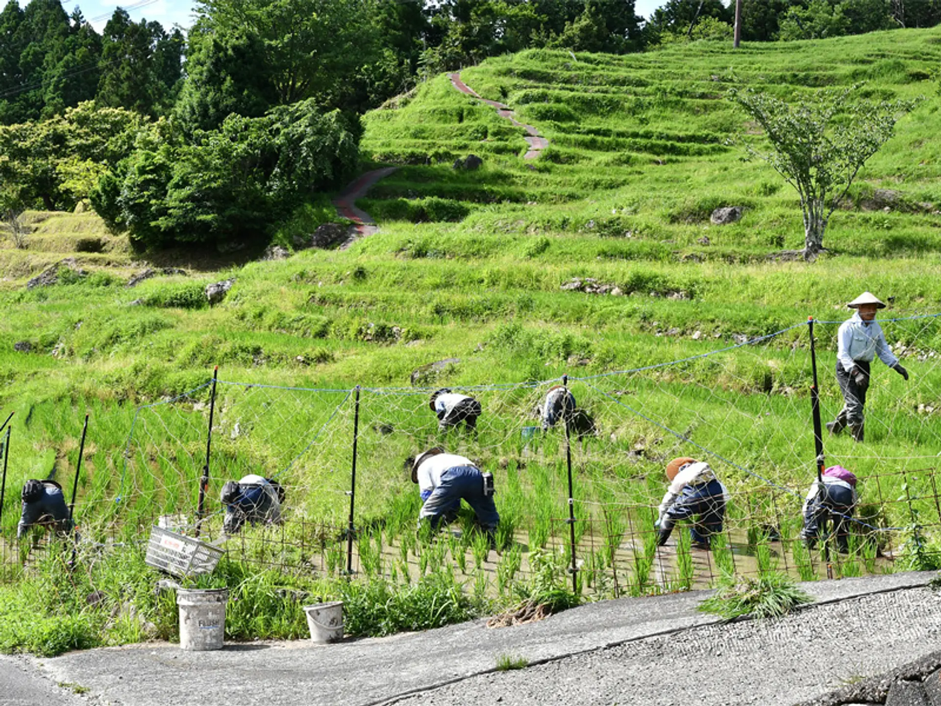 田植えは4月中旬から5月下旬頃。小さく機械を入れることが出来ない田んぼは、今でも手作業で田植えを行っています。1,340枚もあるため、すべての田んぼに稲が植え終わるまでには、かなりの時間と労力がかかります。